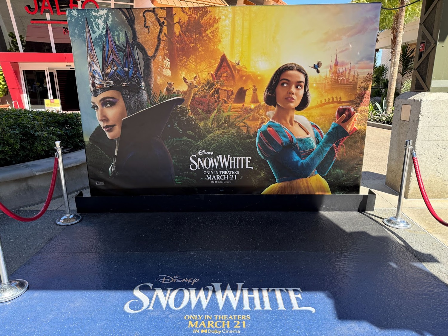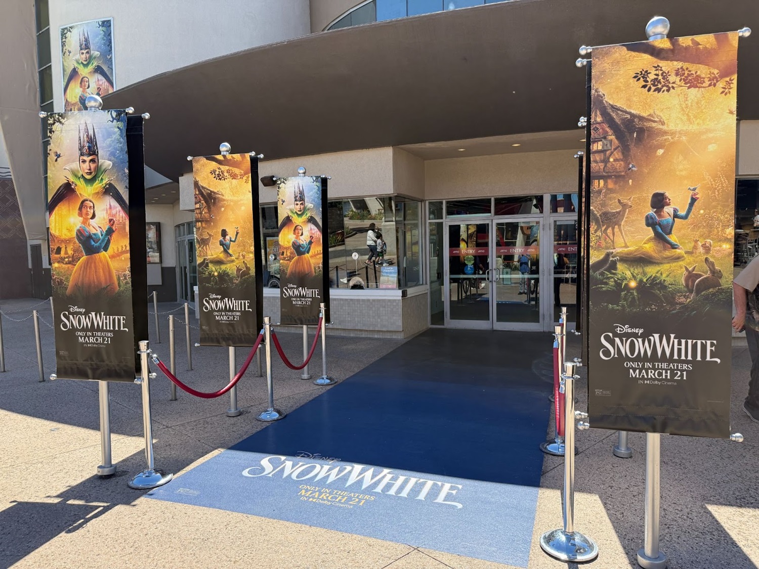 - Guests entering AMC will get to walk down the Snow White “carpet", which is hugged by movie banners. While not an actual carpet, the floor decal is meant to mirror the look of the iconic premiere decoration.