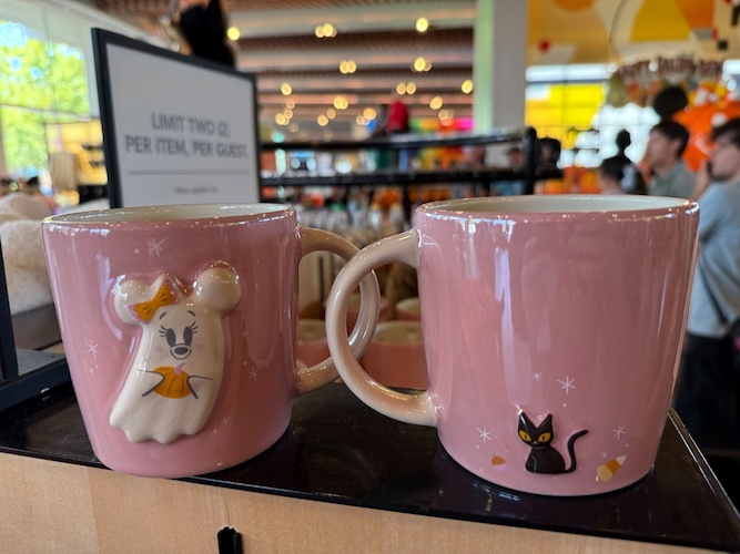 This pastel Halloween mug features Ghost Minnie holding a pumpkin on one side and a black cat, candy corn, and sparkles on the other. It’s both dishwasher- and microwave-safe for everyday use. The mug retails for $19.99.