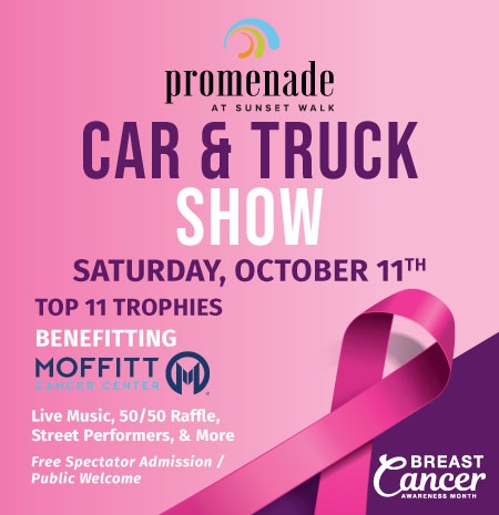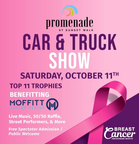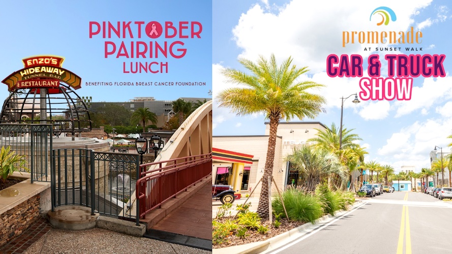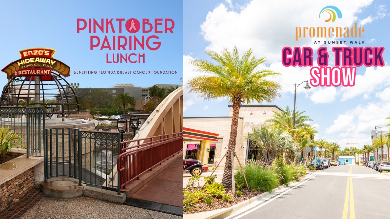 - Saturday, October 11, 2025, from 2-8 p.m., Orlando’s premier entertainment and dining district, the Promenade at Sunset Walk, will present the 4th Annual Breast Cancer Awareness Car & Truck Show.