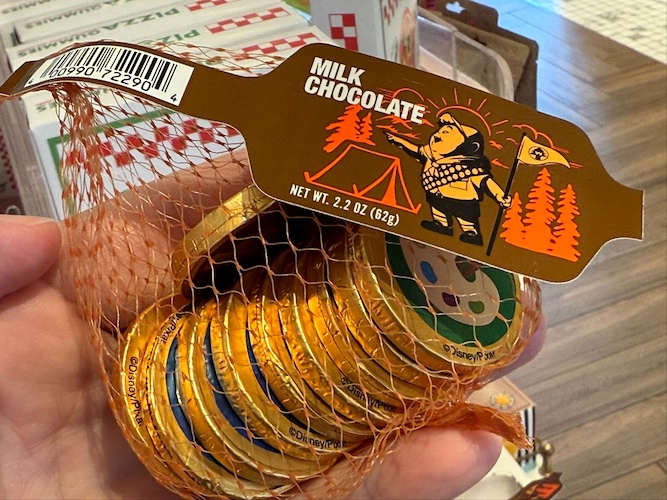 The beloved film Up has a set of chocolate coins for sale ($5.49) made to resemble some Wilderness Explorer badges.
