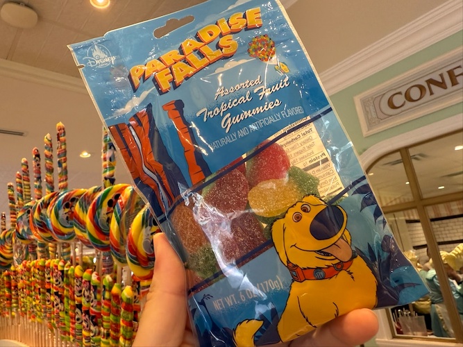 Tropical fruit gummies themed to Paradise Falls celebrate Dug and the wondrous colors of Carl’s balloons.