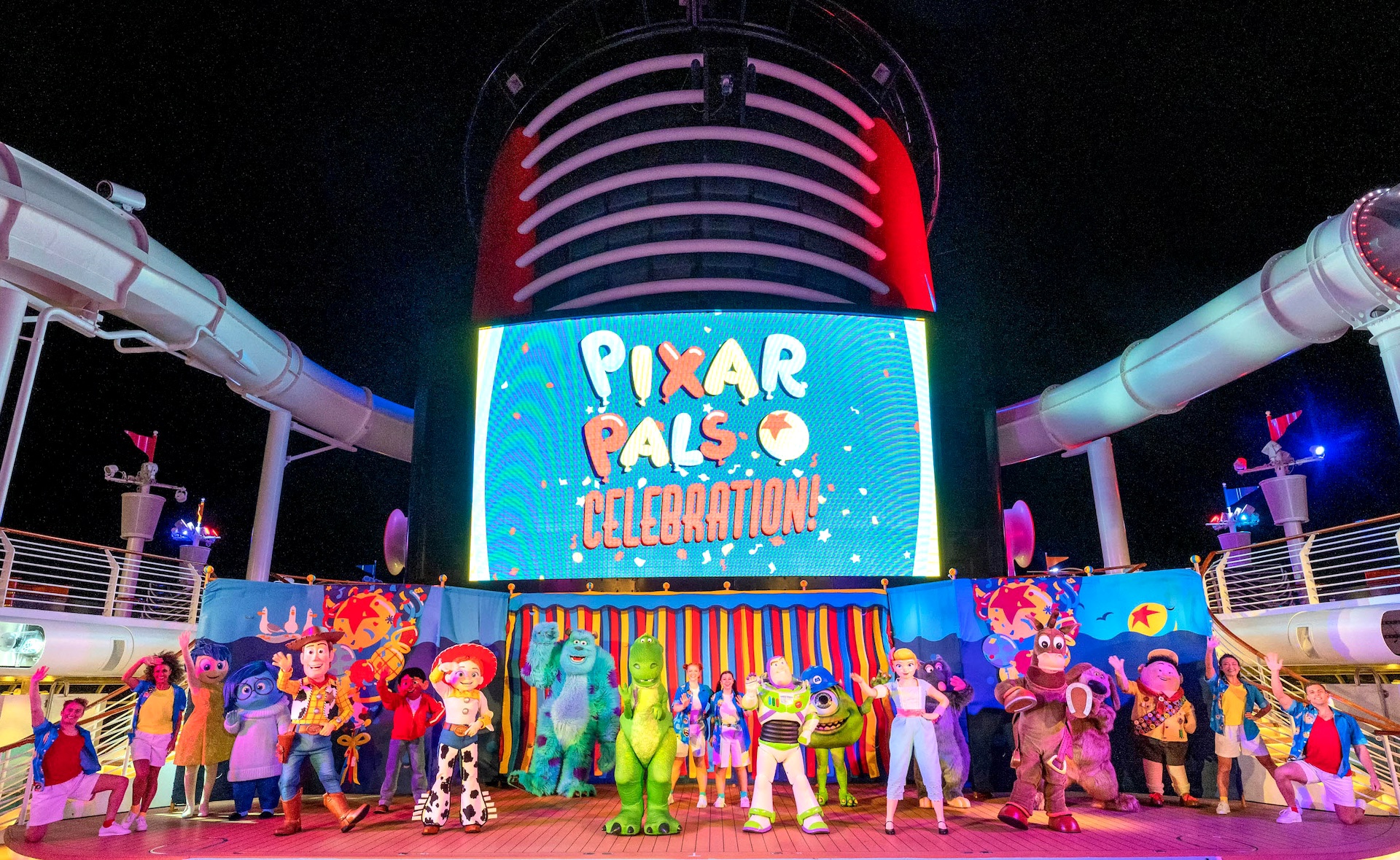 - Families enjoy a rootin’ tootin’ breakfast, a totally awesome pool party, themed activities and treats, and character encounters around every corner throughout a fun-filled day at sea that culminates with a Pixar Pals Celebration dance party and a deck show of incredible proportions.