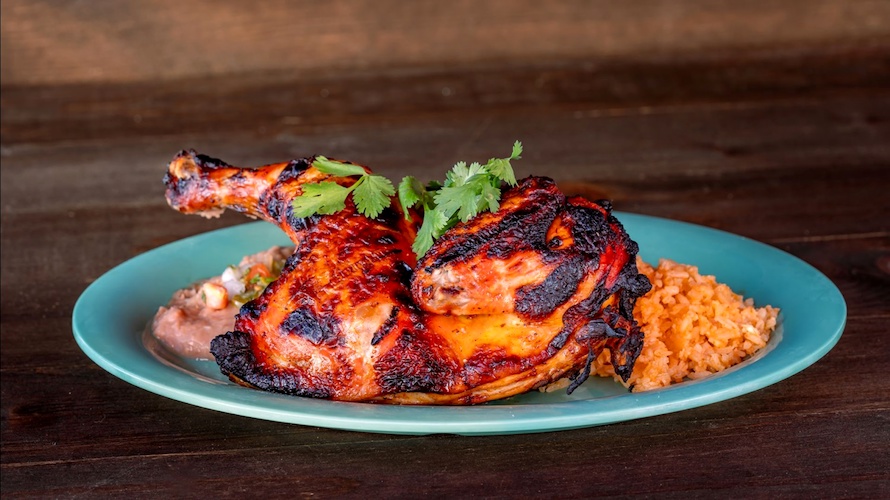 - Achiote Half Chicken: Roasted achiote-marinated chicken served with Spanish rice, refried beans, and nopal salad (New)