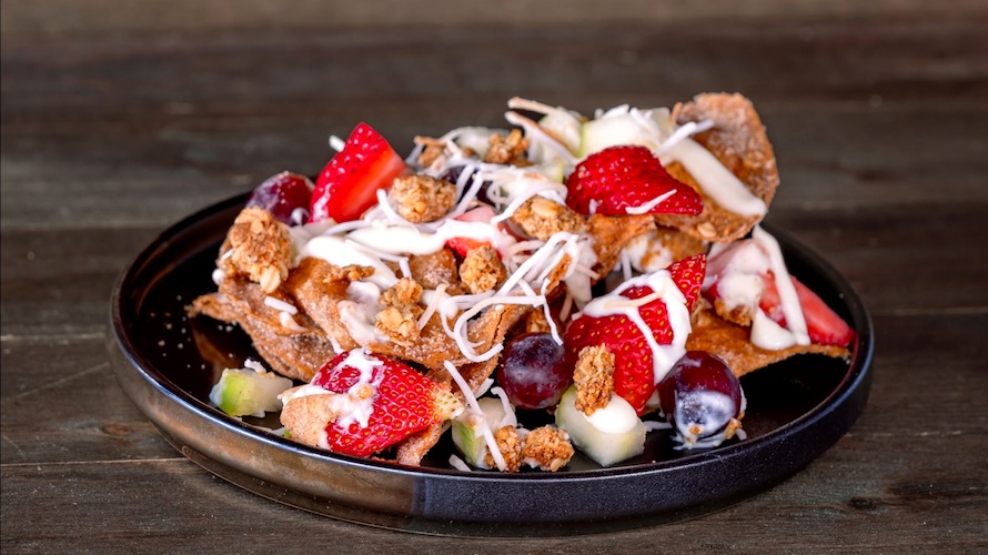 - Buñuelos Biónico: Fried tortilla chips coated in cinnamon and sugar, loaded with fresh fruit, toasted coconut, and sweetened condensed banana milk (New)