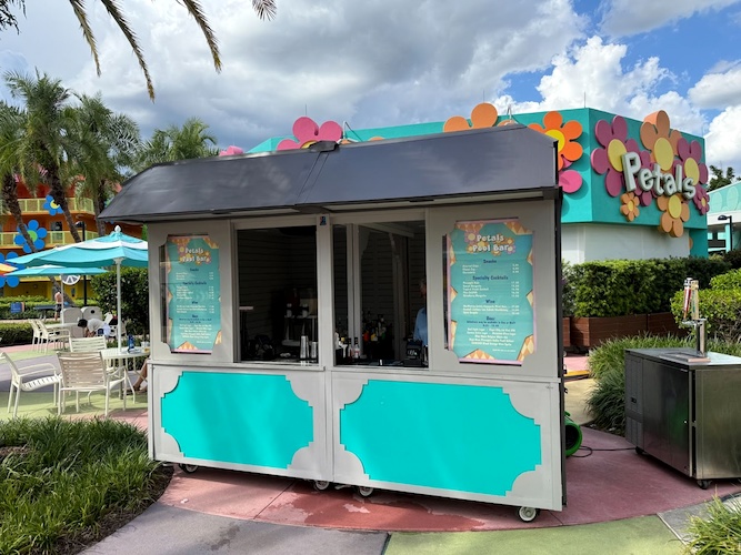 Just outside the lobby, in front of the Hippy Dippy Pool, the Petals Pool Bar is currently closed for refurbishment. But not to worry, a temporary kiosk has been set up in front of the usual bar with a simpler menu.