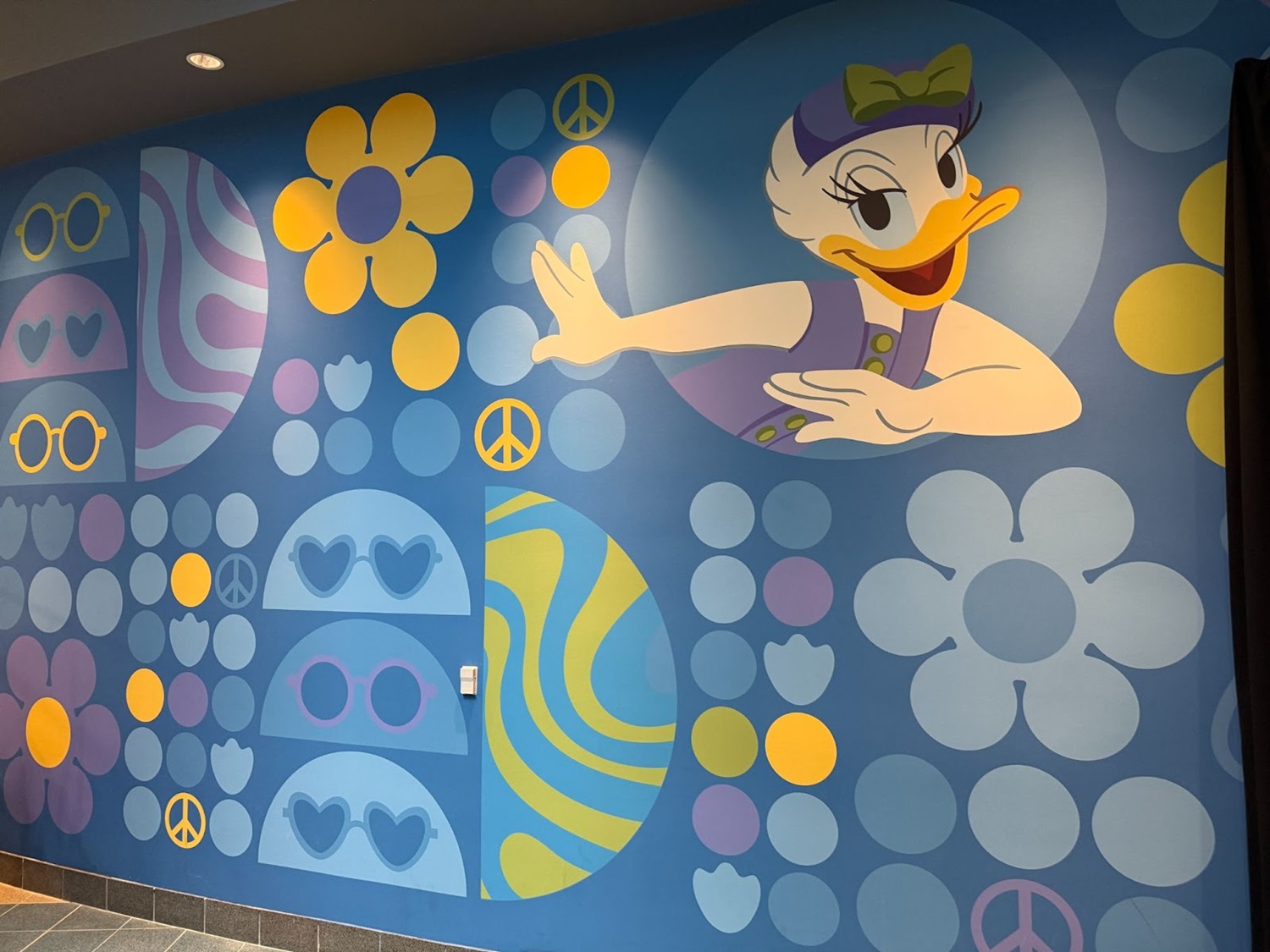 Closer towards Everything Pop Shopping & Dining, a new mural has appeared, with Minnie looking her 50s best, while Daisy adorns some 60s flower power. These murals replace a collection of artifacts and photographs from various facets of pop culture, from the 50s through the 90s.