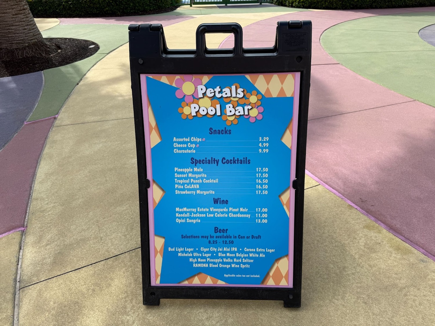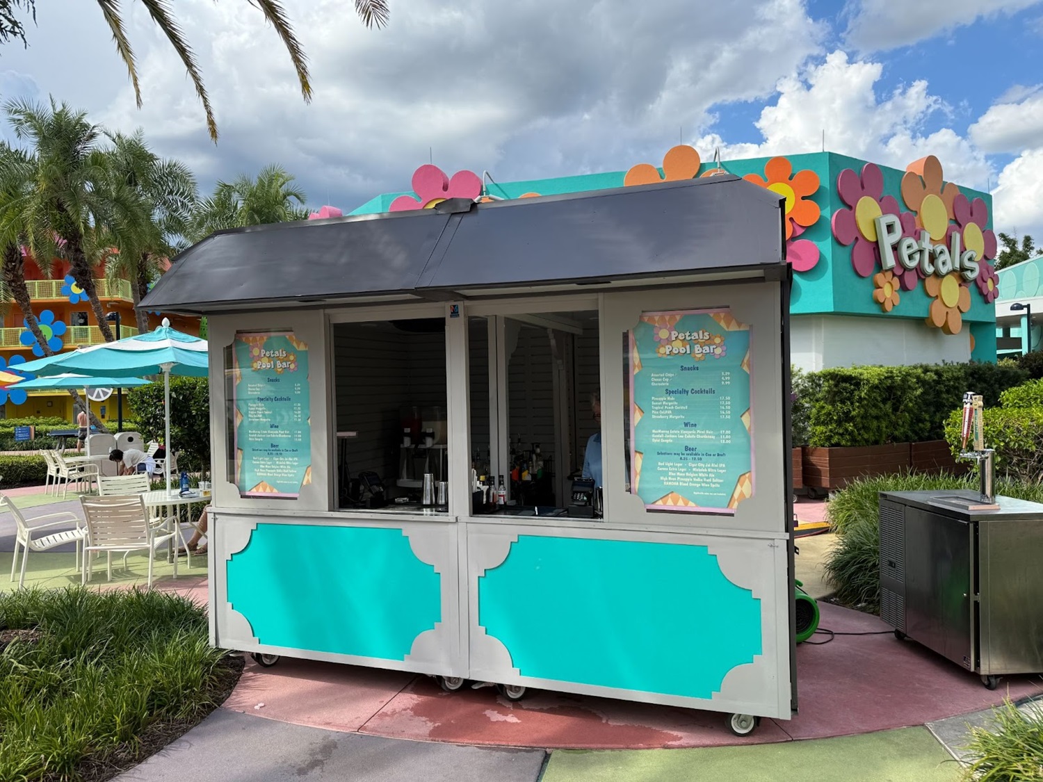 Just outside the lobby, in front of the Hippy Dippy Pool, the Petals Pool Bar is currently closed for refurbishment. But not to worry, a temporary kiosk has been set up in front of the usual bar with a simpler menu.