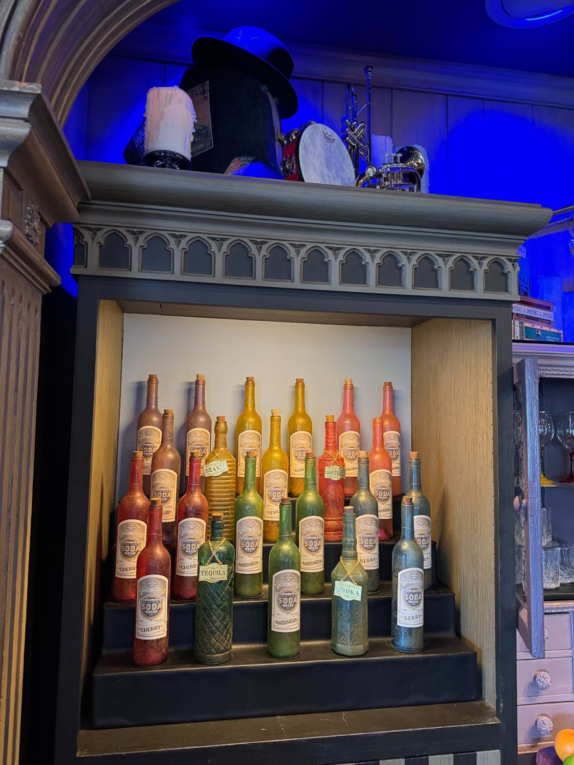 - The location has lots of unique detailing, with some of the former gift shops “curios" being found throughout, as well as new jazz posters, instruments, and soda bottle decorations.