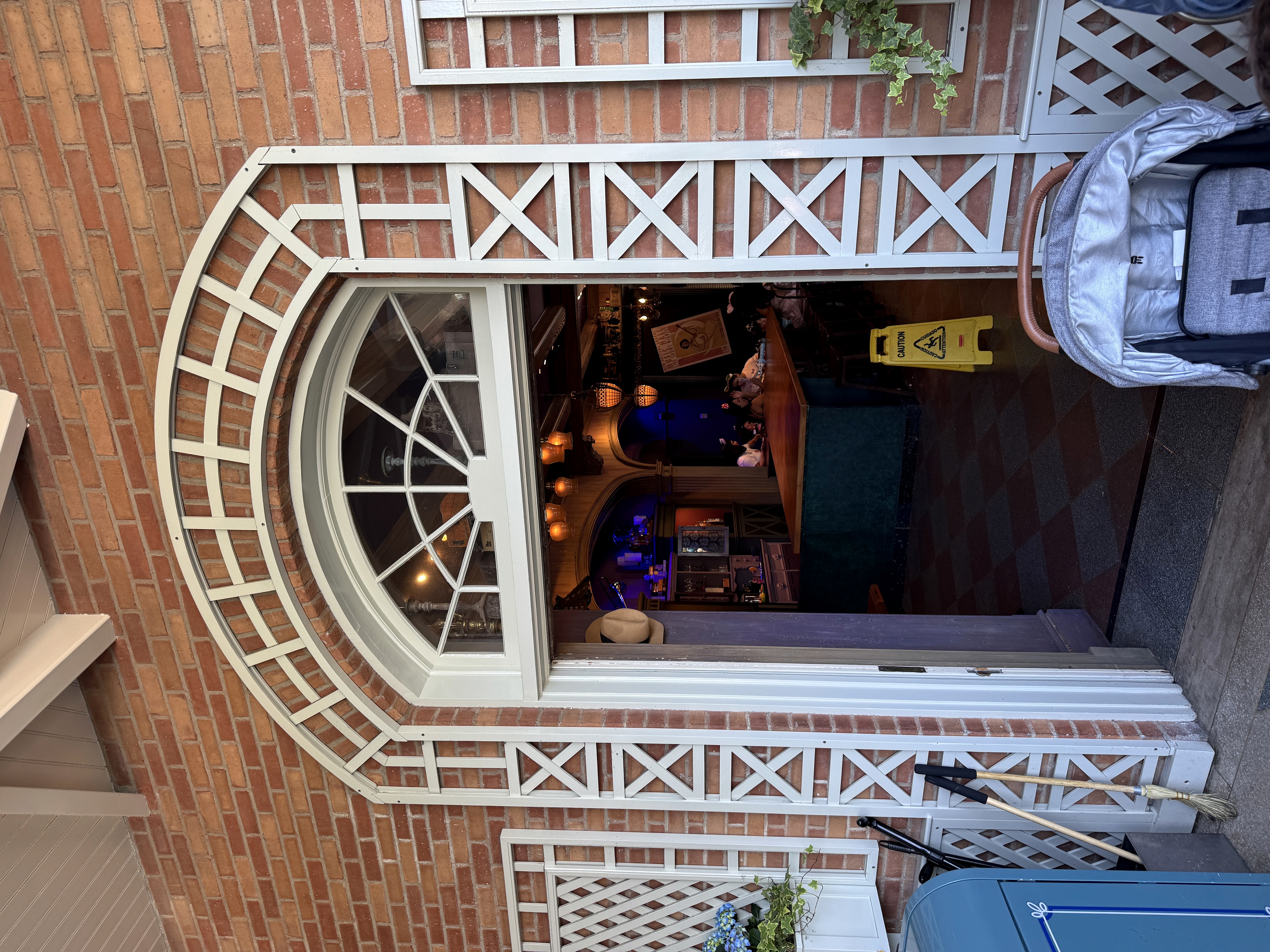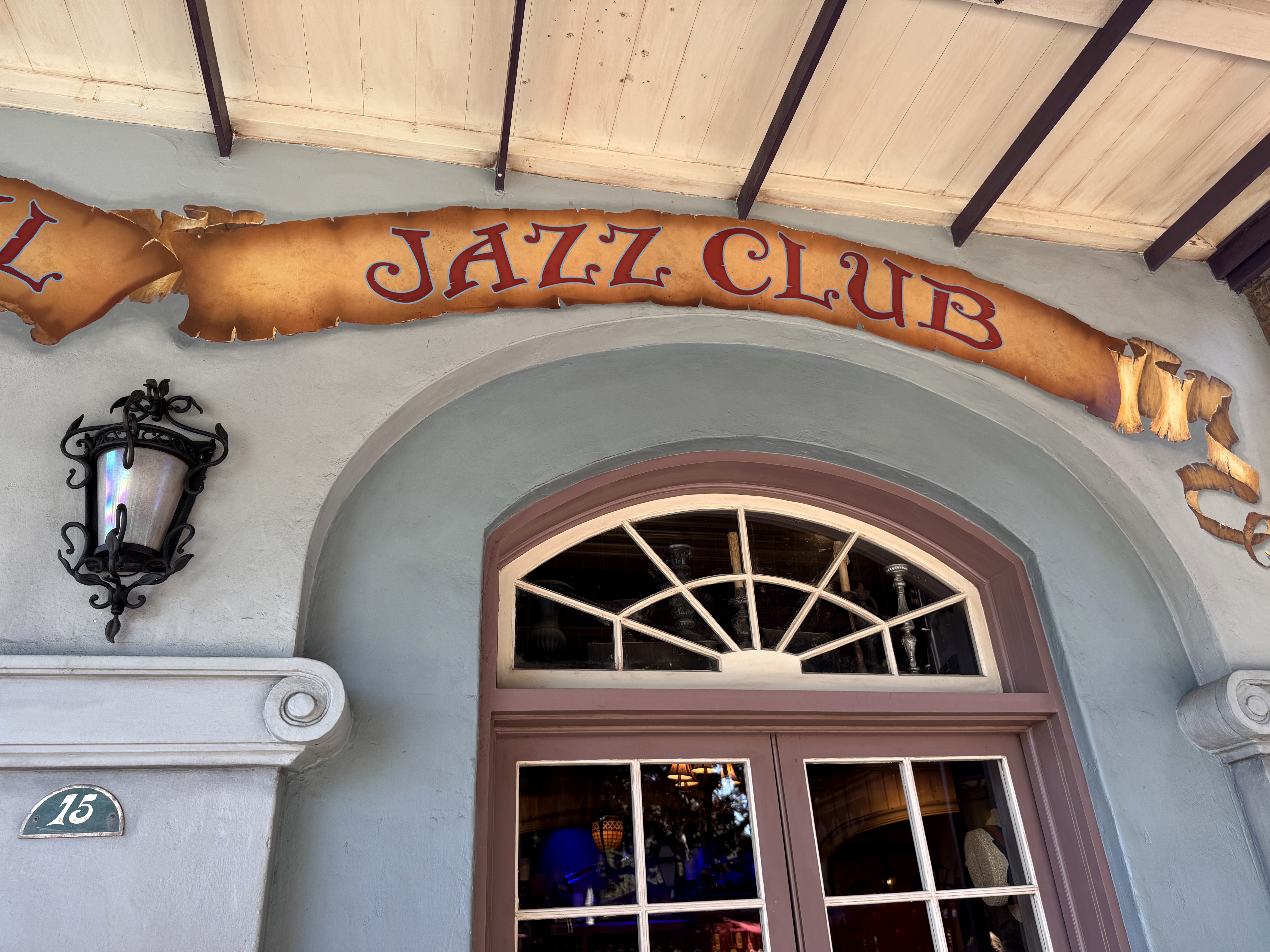 The signage for the gift shop has been replaced with a decal for the Jazz Club, which already appears to be peeling off.