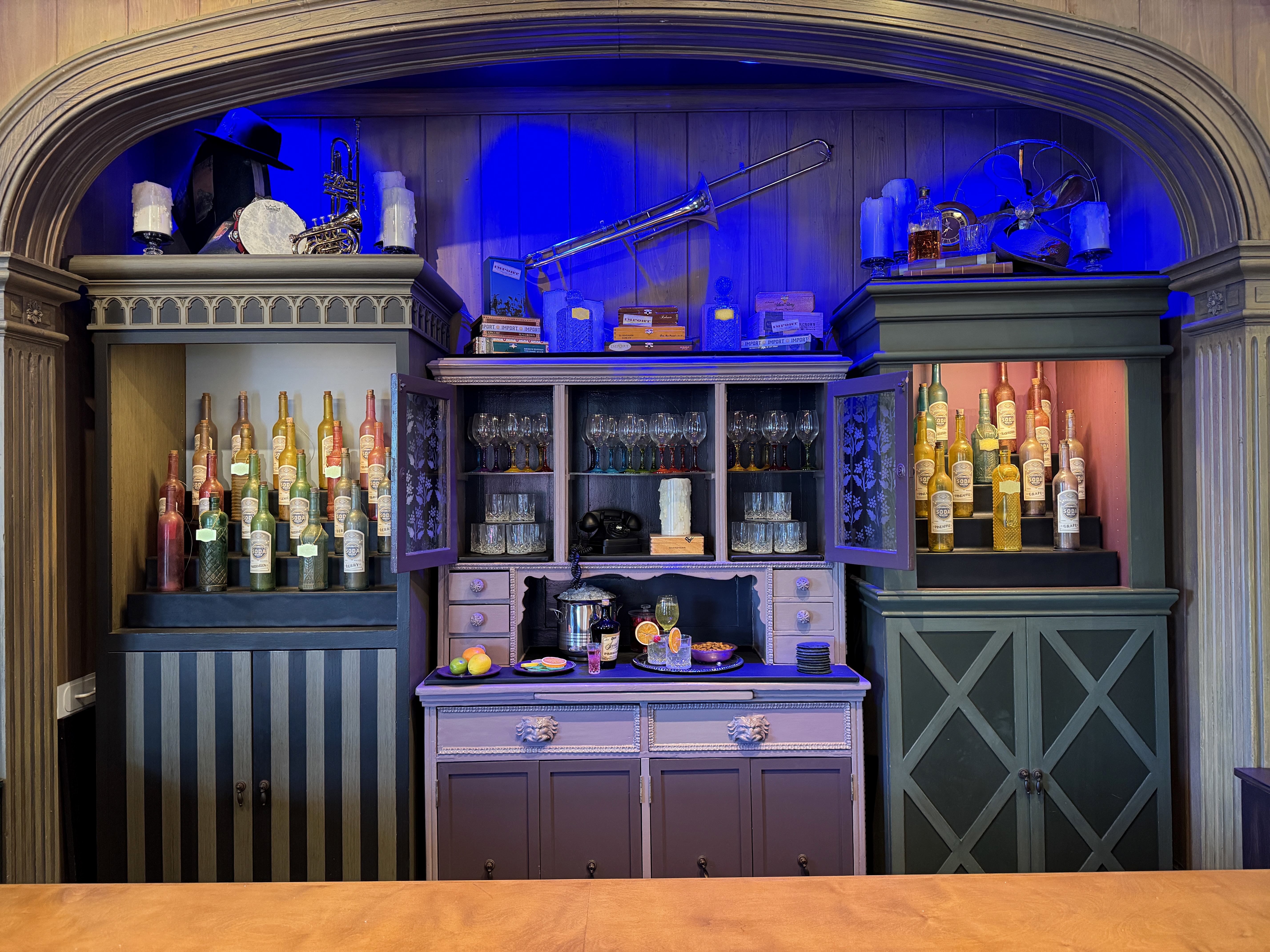 Port Royal Curios and Curiosities used to house Haunted Mansion and The Nightmare Before Christmas merchandise, and the interior played into the spookier, supernatural theme. With the new repurpose, that has been removed and replaced with more of a lounge aesthetic.