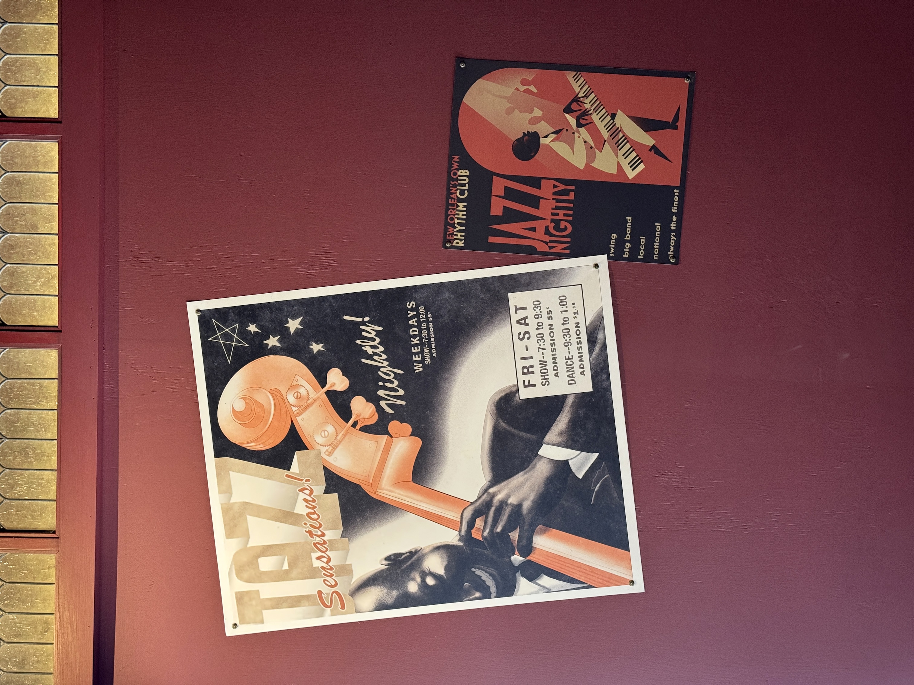 The location has lots of unique detailing, with some of the former gift shops “curios" being found throughout, as well as new jazz posters, instruments, and soda bottle decorations.