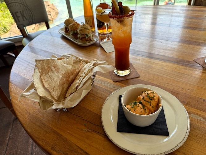 And from Jock Lindsey’s Hangar Bar, Gulf White Shrimp Fritters – Sunshine Stroll Orange Pilsner-battered Gulf white shrimp fritter, grilled sweet peppers, and Datil pepper aïoli.
