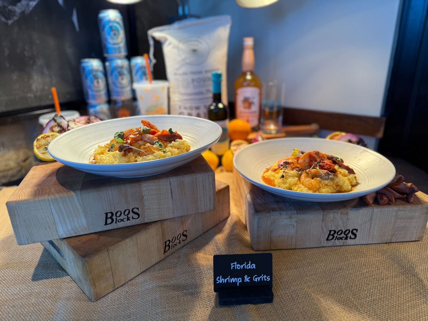 Moving along to Terralina Crafted Italian, where we got to sample the Terralina Sunburst frozen cocktail, Florida Shrimp and Grits, and Pizza Alla Vodka.