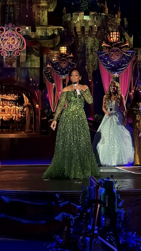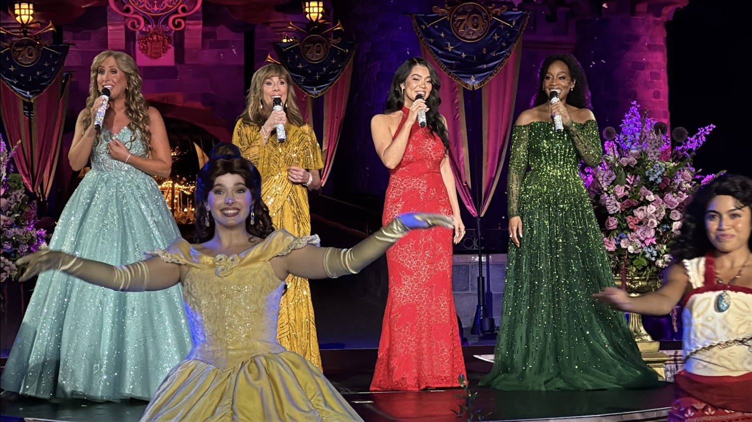 The stage was set for a one-of-a-kind performance featuring the voices of some of Disney’s most iconic animated princesses. As night fell, the glowing lights came on for the magical performance.