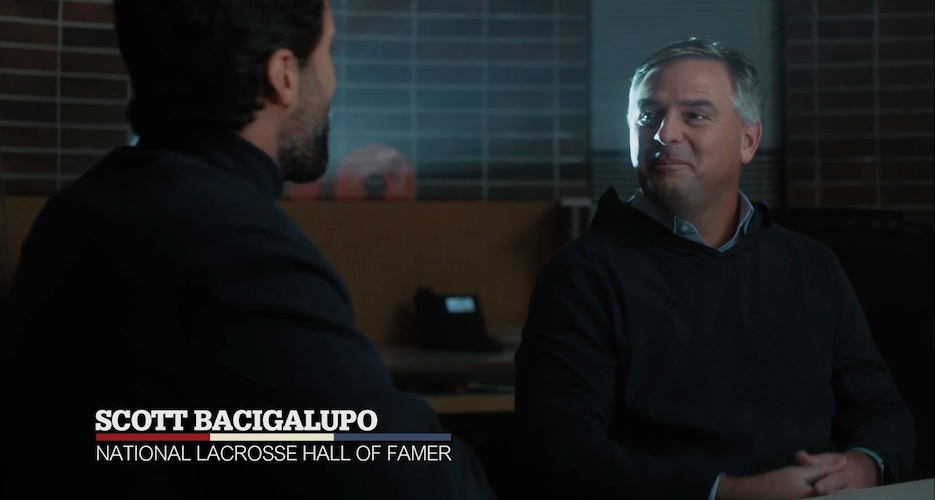 In that championship game, Princeton dominated the first half, but powerhouse Syracuse clawed back to tie the game in the final seconds—thanks to a mistake by Bacigalupo while playing out of the goal. In the replay footage, you can see the college player’s body language of defeat. Even years later, Bacigalupo’s reaction while watching that moment shows how deeply that moment must’ve hit.