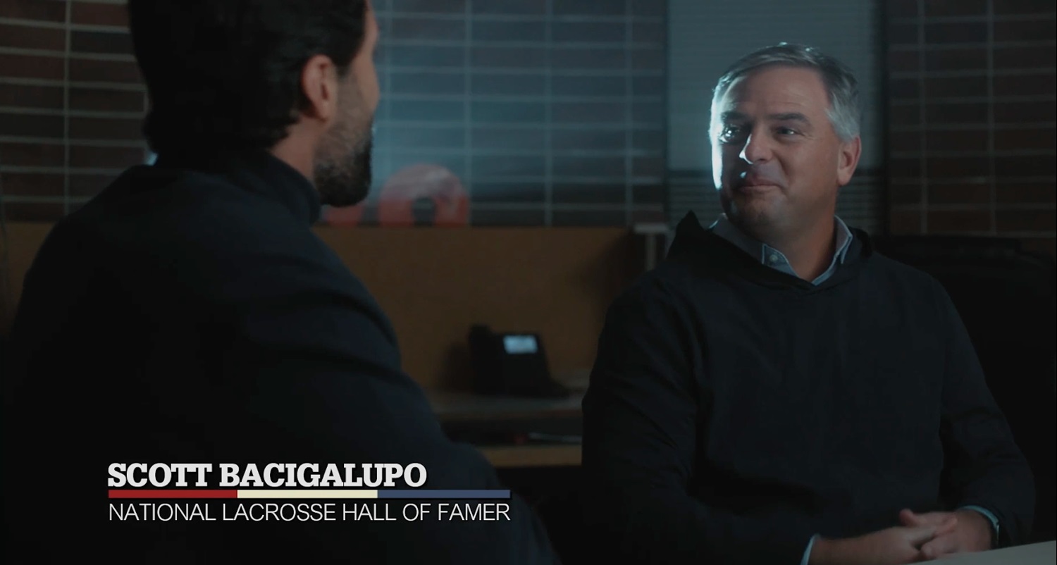In that championship game, Princeton dominated the first half, but powerhouse Syracuse clawed back to tie the game in the final seconds—thanks to a mistake by Bacigalupo while playing out of the goal. In the replay footage, you can see the college player’s body language of defeat. Even years later, Bacigalupo’s reaction while watching that moment shows how deeply that moment must’ve hit.