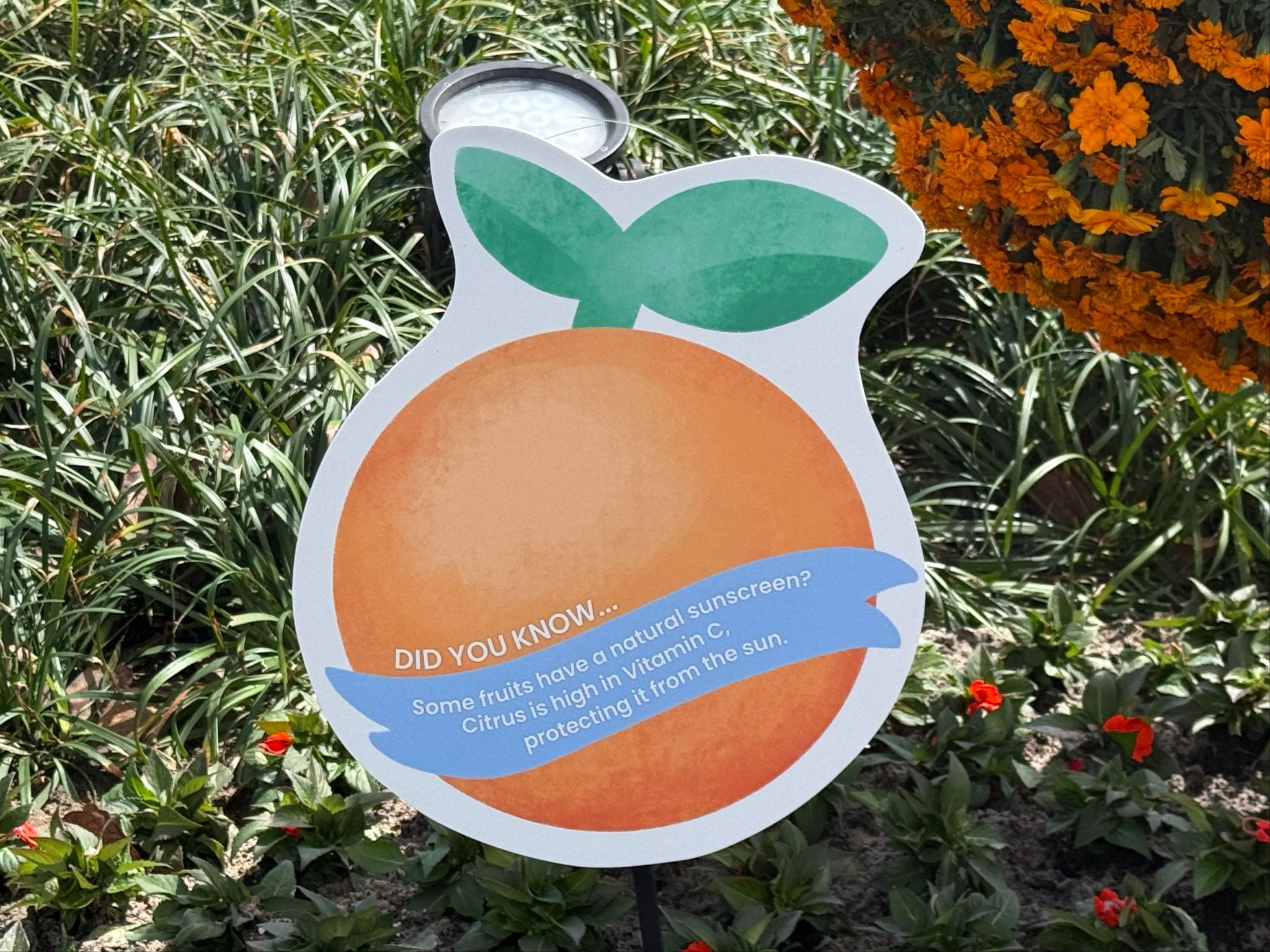 - The topiaries included cherry, grape, and orange-themed displays, each with an information card highlighting fun facts about water.