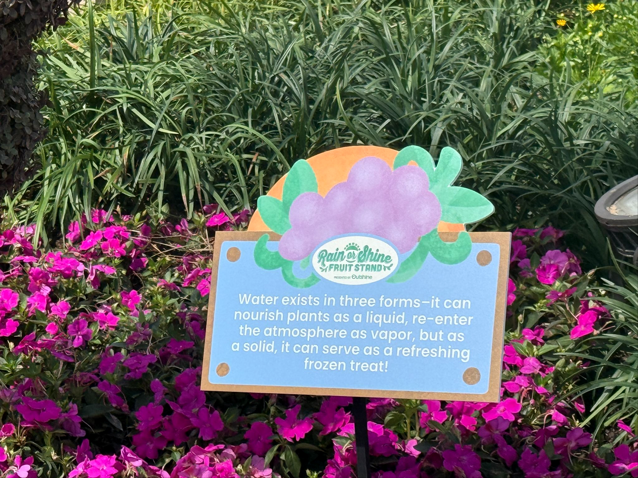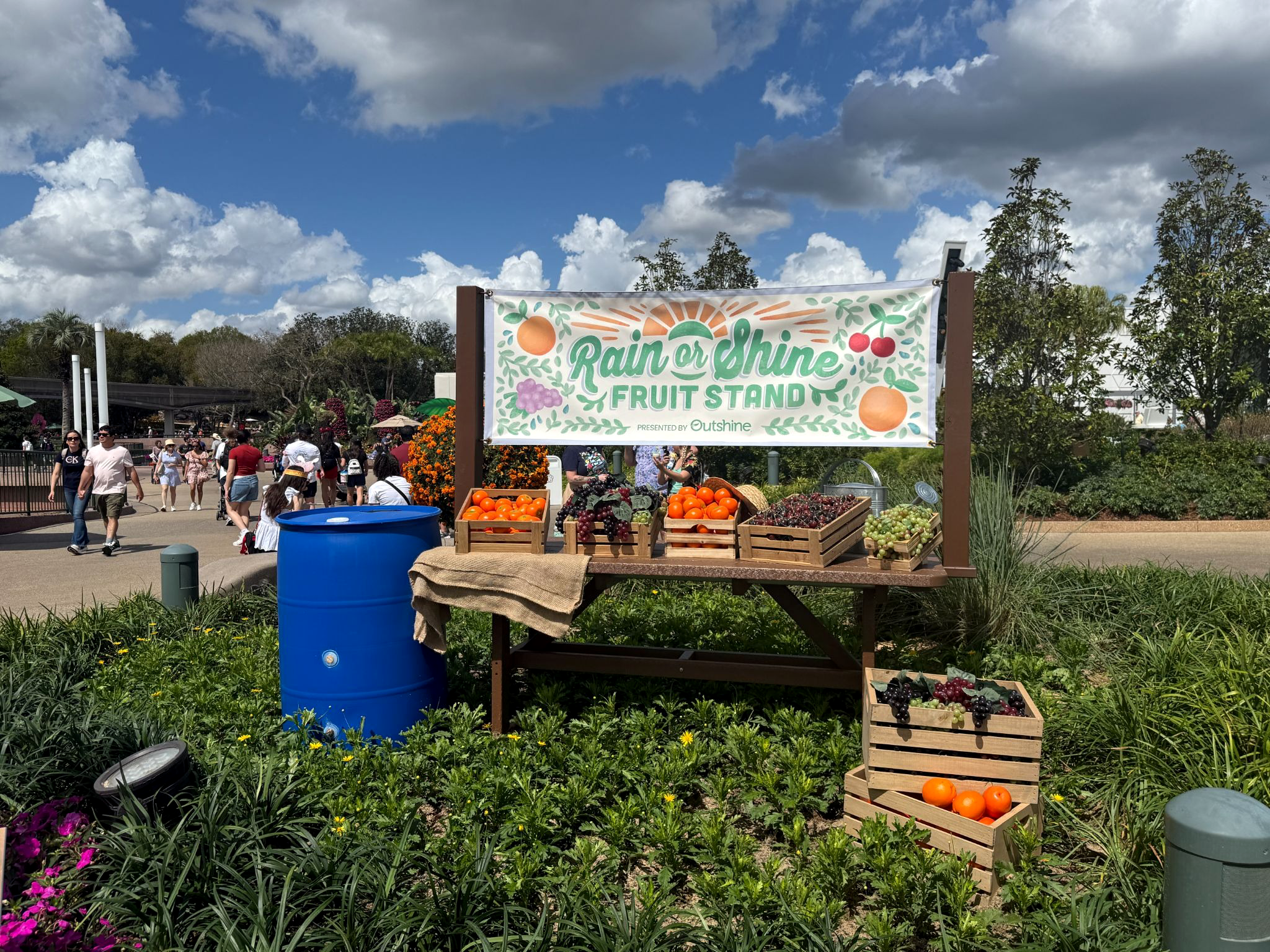 Check out EPCOT’s newest International Flower & Garden Festival addition with the Rain or Shine Fruit Stand Presented by Outshine.