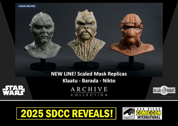 - August 26th: The Archive Collection Scaled Mask line expands with replicas for Klaatu, Barada, and Nikto.