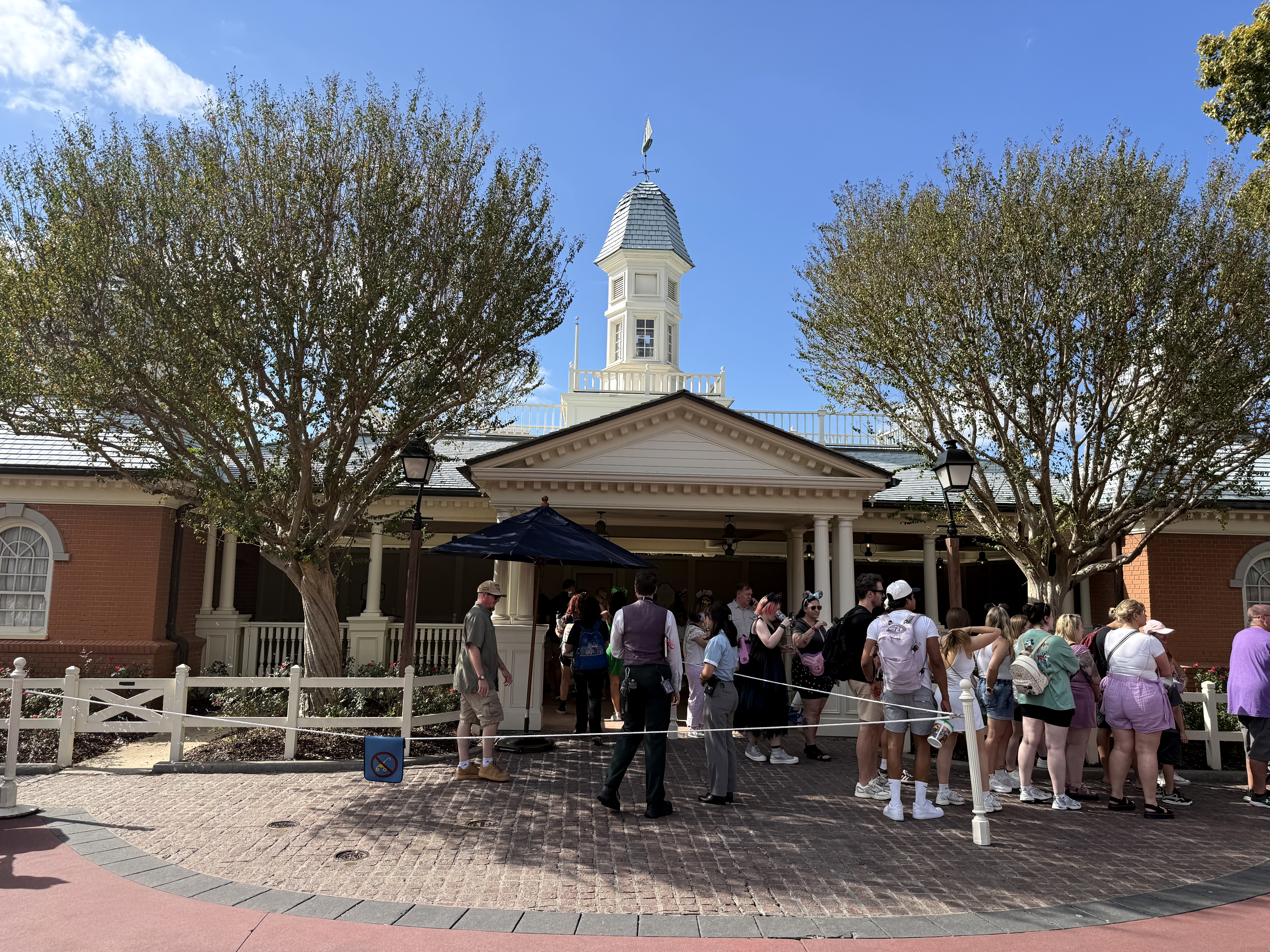 - Now, the Riverboat Landing is being reutilized as an extended queue for the Mansion, not only getting the line out of the street, but also giving guests some much needed shade.