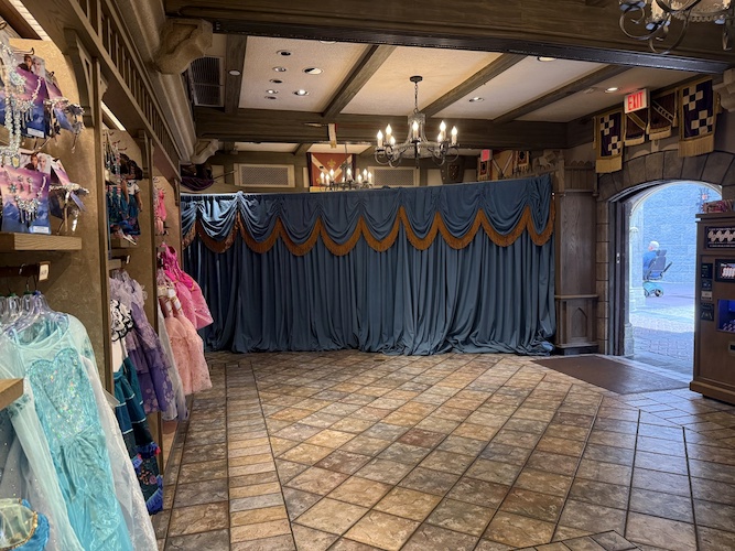 The Disney PhotoPass offering is currently curtained off inside Sir Mickey's – a gift shop in Fantrasyland at the Magic Kingdom.