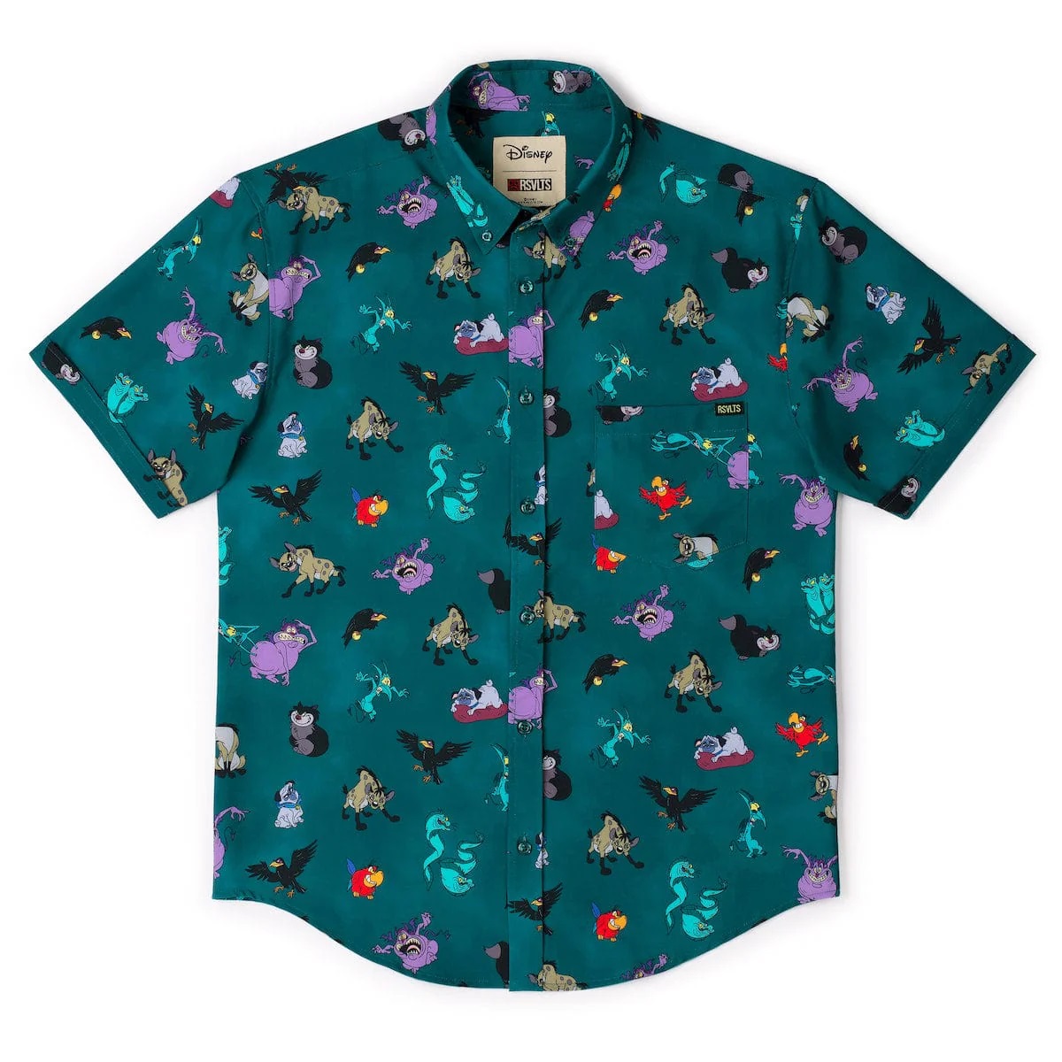 The Terrible Trinkets ($70) button-down showcases shells, poison apples, blue flames, and other villain artifacts.