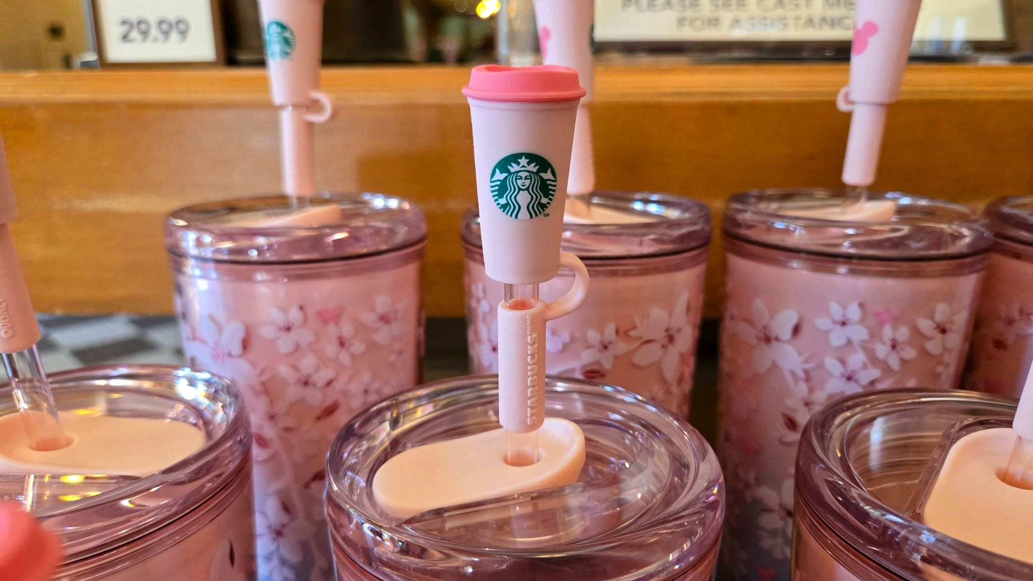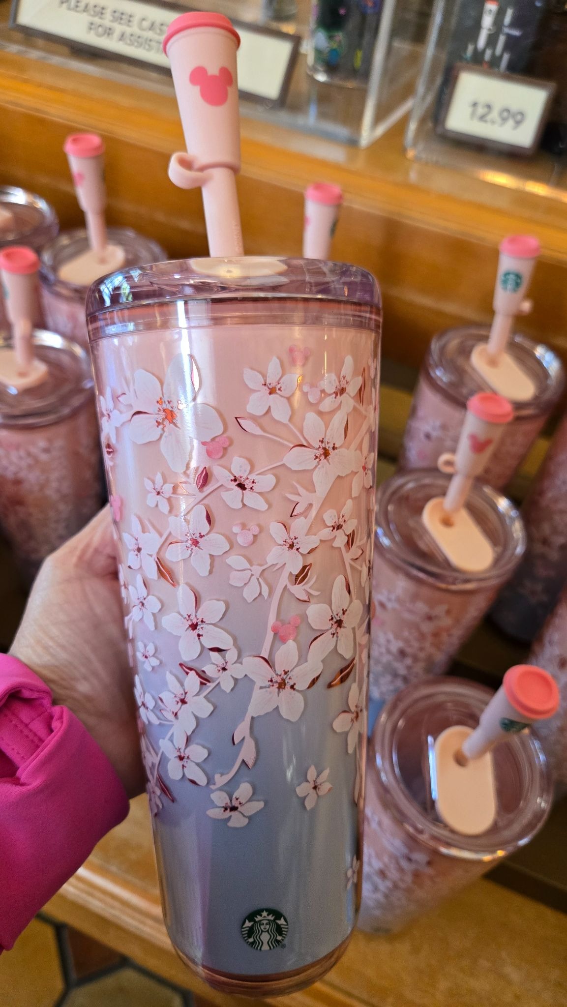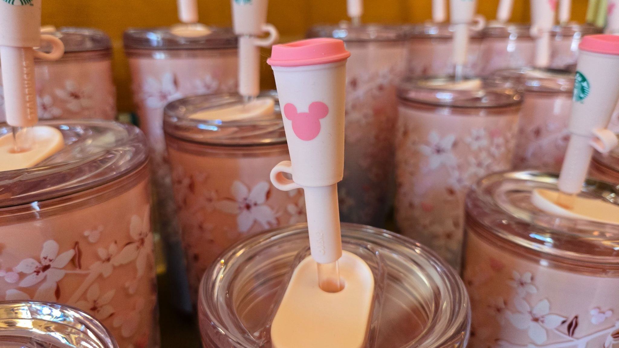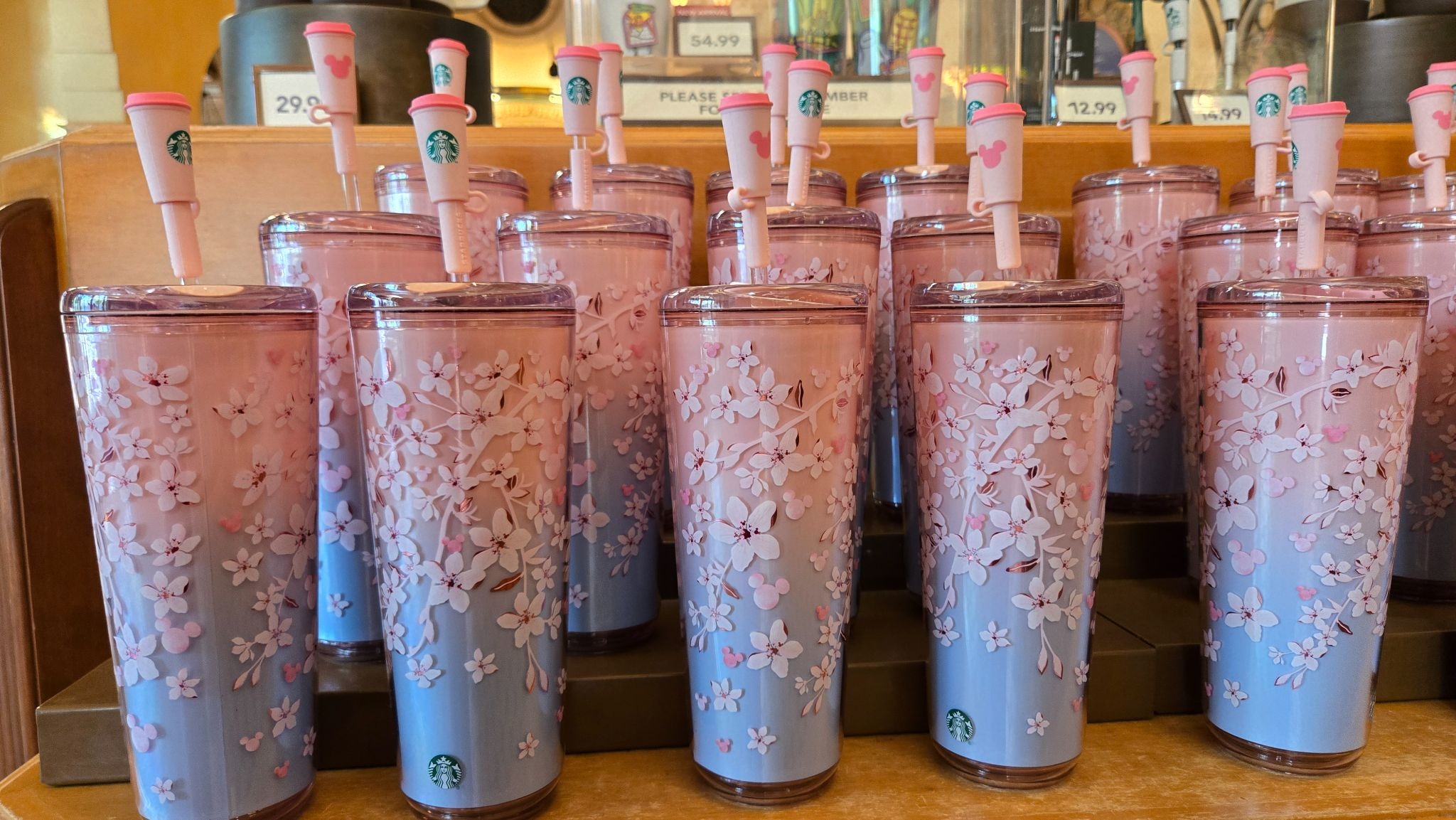 Spring is blooming across the parks, and guests visiting the resort can now pick up a sakura cherry blossom-inspired Starbucks tumbler.