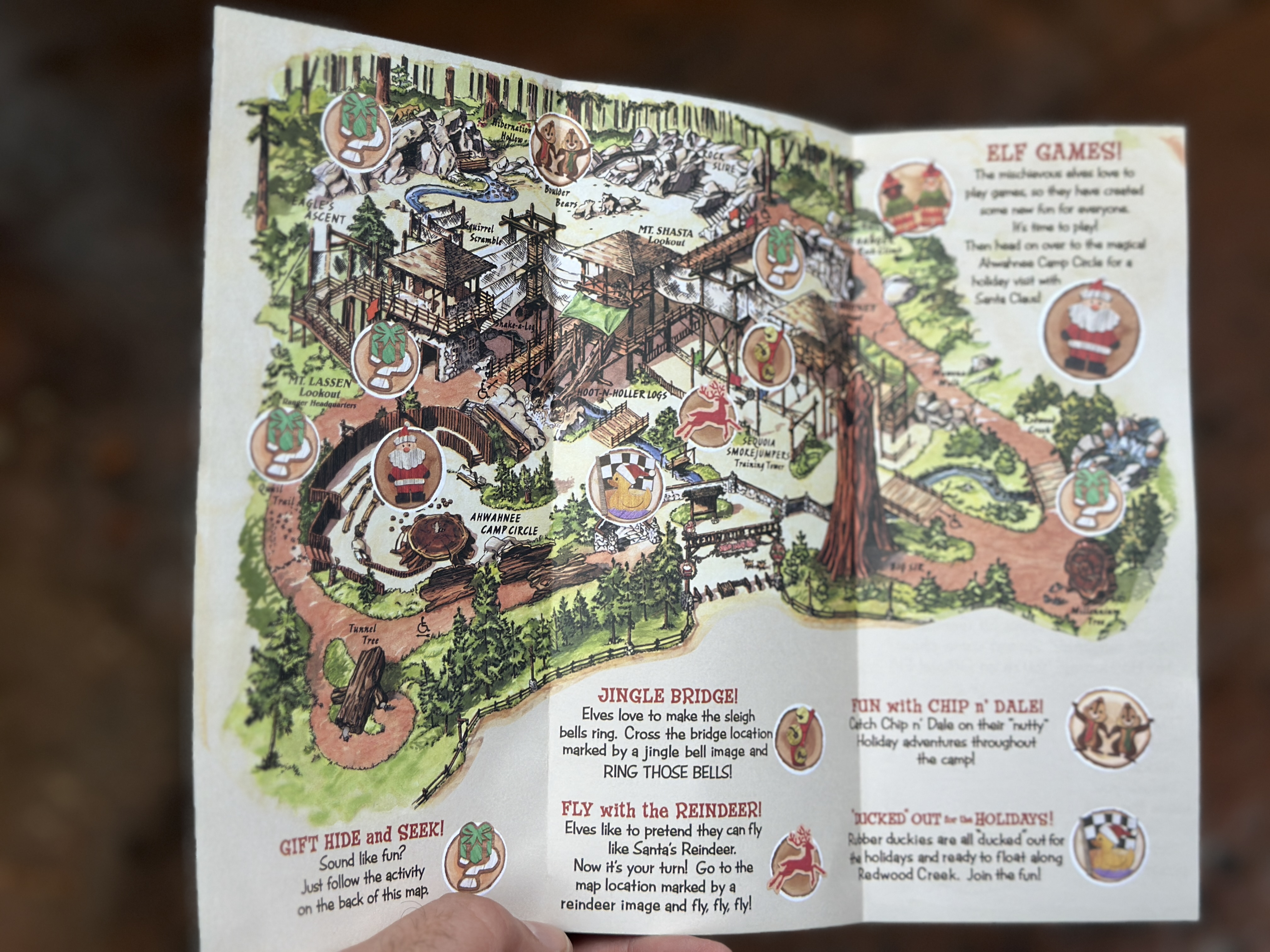 - Beyond the meet-and-greet, the surrounding trail features playful, holiday-themed activities for young explorers, allowing families to enjoy the full Redwood Creek experience during their visit. The area’s rope bridges, rock walls, slides, and lookout towers remain open, giving kids plenty of space to burn off excitement while staying immersed in the seasonal atmosphere.