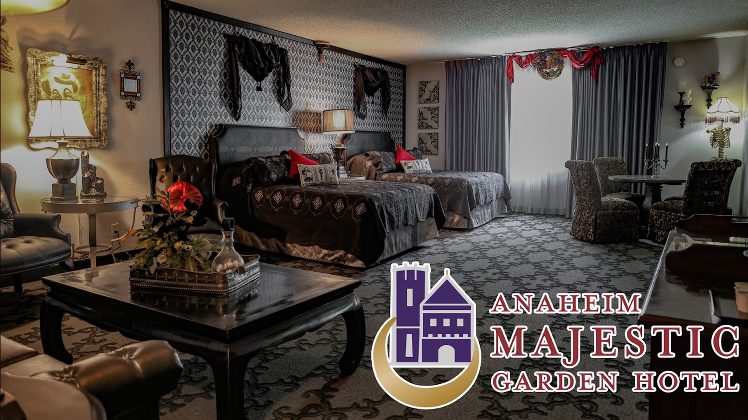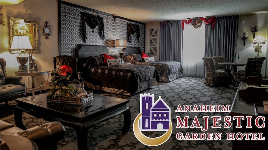 Located just across Ball Road from Disneyland Resort, the Anaheim Majestic Garden Hotel has been serving Southern California guests for over 55 years (perhaps not coincidentally, it opened in 1969… the same year as Disneyland’s beloved The Haunted Mansion attraction). And now this storied location– originally named the Royal Coach Inn– is offering a fun new gothic-themed room called Sargon’s Darkwood Chamber that’s sure to please fans of the spooky side of theme parks.
