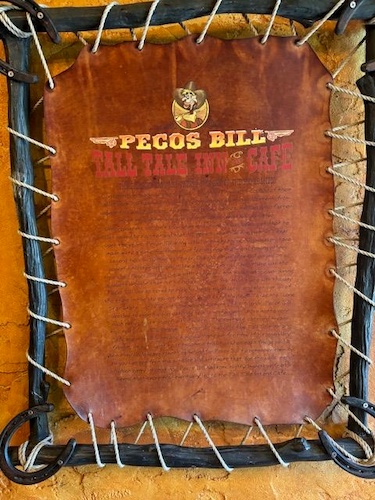 Now that you know the story behind the name, the next time you are in the Magic Kingdom, even if you are not hungry, take a moment to walk through the restaurant. There is always ample seating in this air-conditioned siesta. You don’t need to eat from the restaurant, but you should take a moment to take in the story of Pecos Bill. Find the artifacts that hang from the wall and enjoy a moment of peace in this place of folklore. If you are lucky, you may find a seat in the indoor courtyard alone, amidst the glory of the western saga.