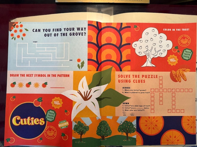 - On the inside, Cuties take center stage with activities and coloring to keep younger kids entertained while they wait for their food.