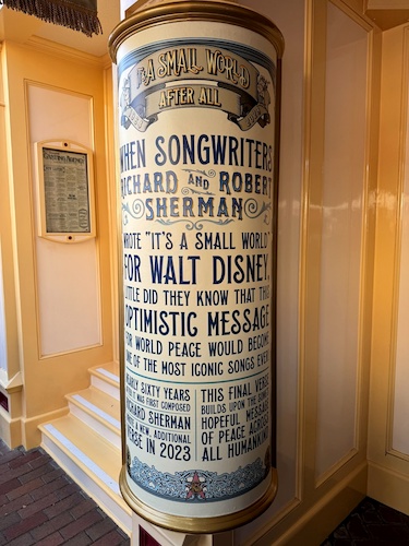 The main focus of the exhibit is “The Last Verse" to “it’s a small world," written by Disney Legend Richard Sherman as his final gift to Disney before his passing last year.