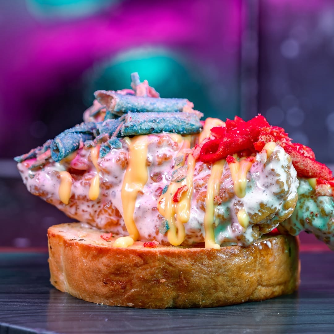 - Loaded Tatooine Toast at Stage Door Café: Texas-style garlic toast topped with buffalo ranch chicken tenders and cheese sauce garnished with spicy blue and red rolled tortilla chips (New)