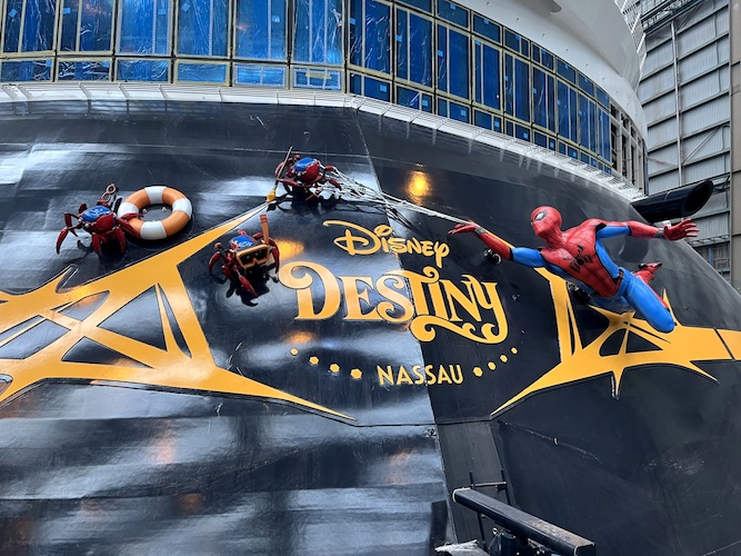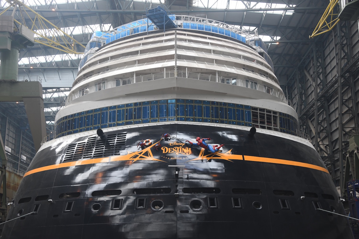 An exciting milestone has been hit in the construction of the Disney Destiny, as the stern characters of Spider-Man and the Spider-Bots have been installed.