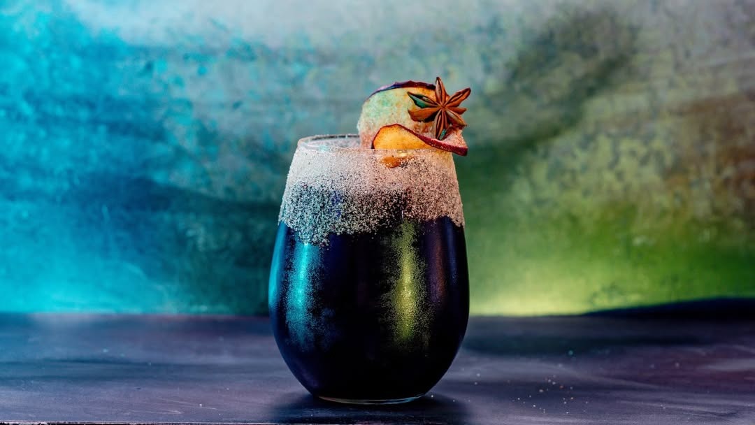 - Joh Blastoh Sangria Gocola: Red wine, apple vodka, apple cider, orange-pineapple juice, and cinnamon, falernum, pomegranate syrups rimmed with a blend of cinnamon sugar, spiced nutmeg, and ground cloves topped with star anise and an apple chip