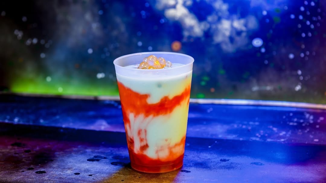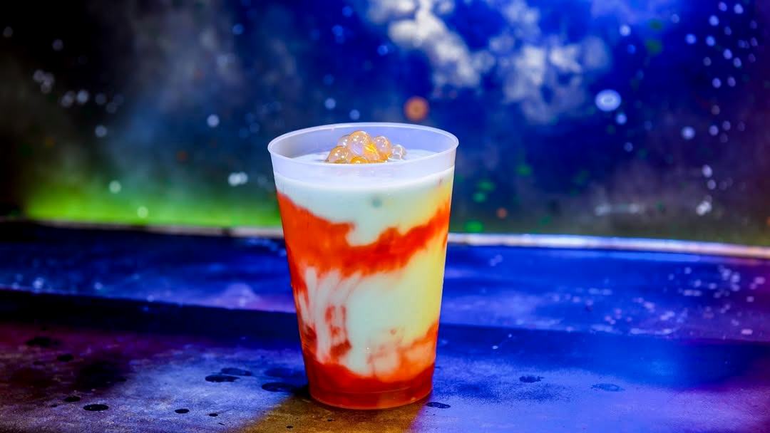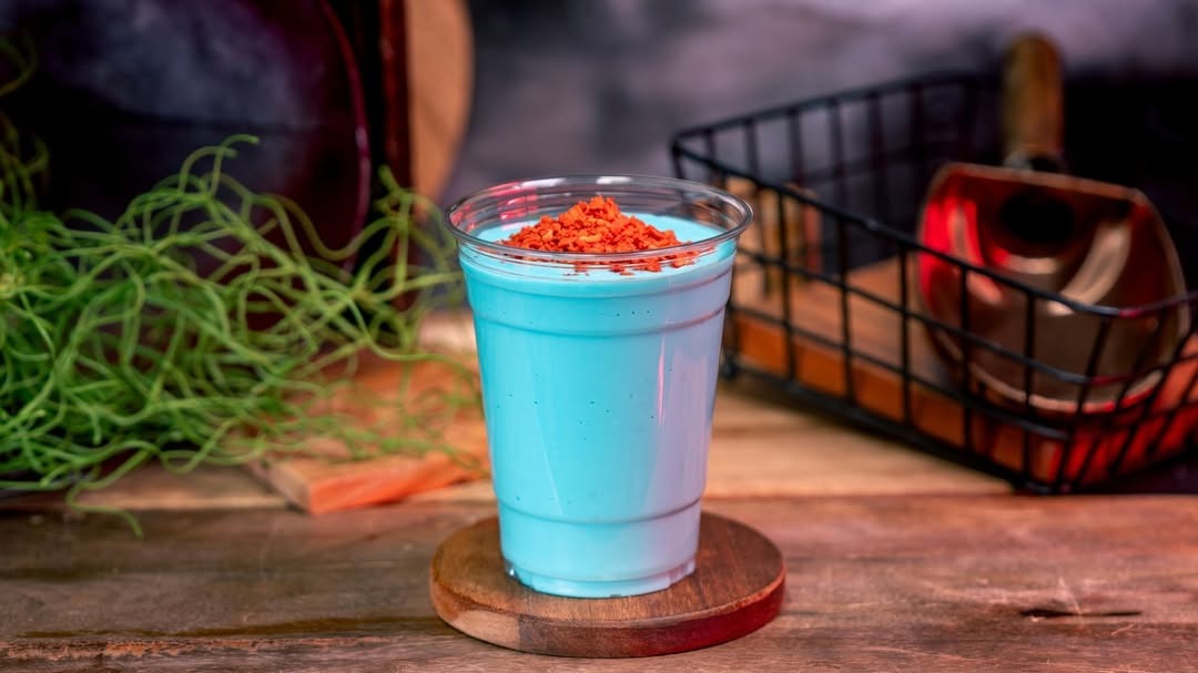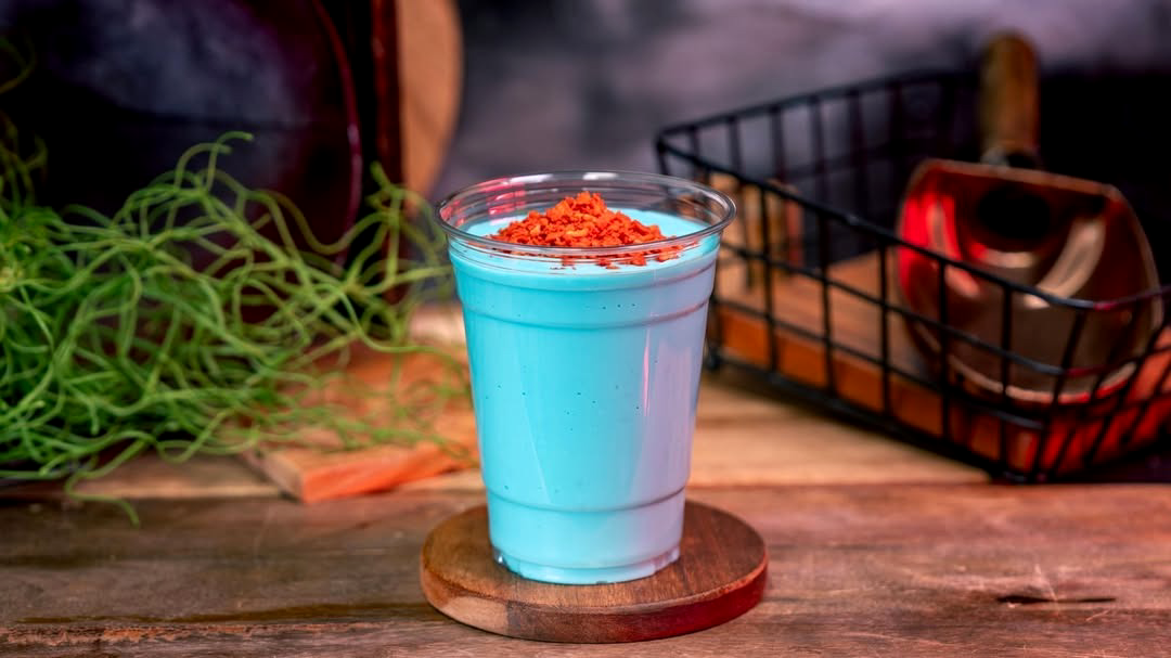 - Blue Milk with Golden Lichen Paddy Frog Eggs: Blue Milk with strawberry puree and golden lychee popping spheres (Non-alcoholic)