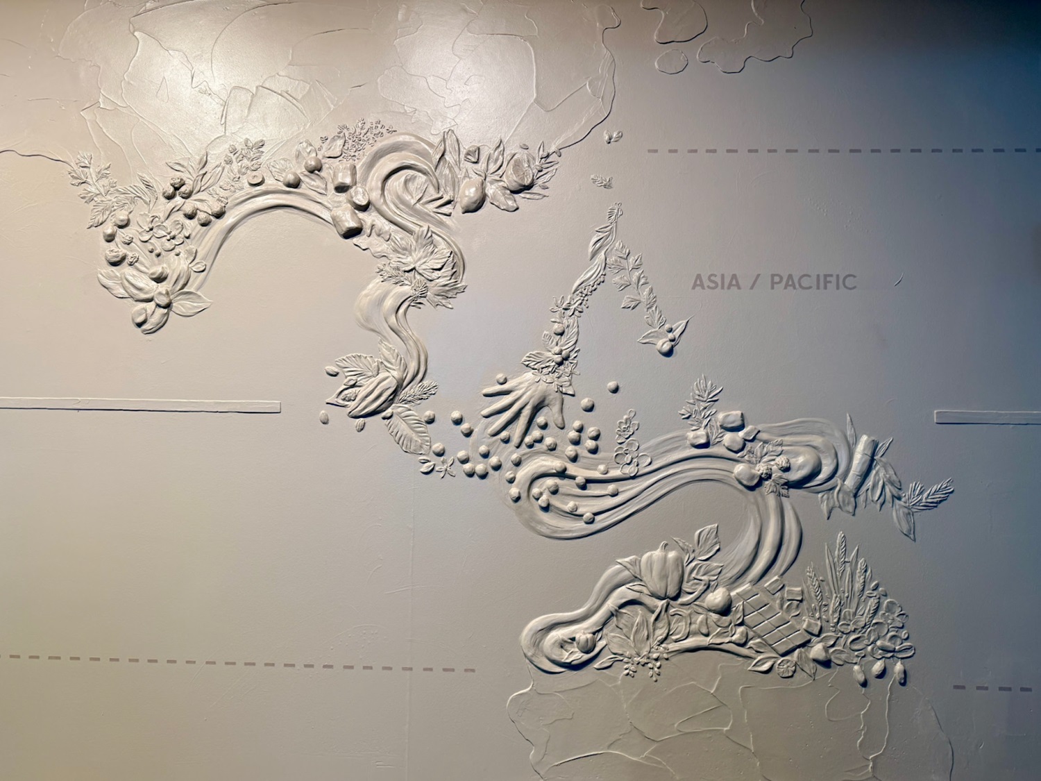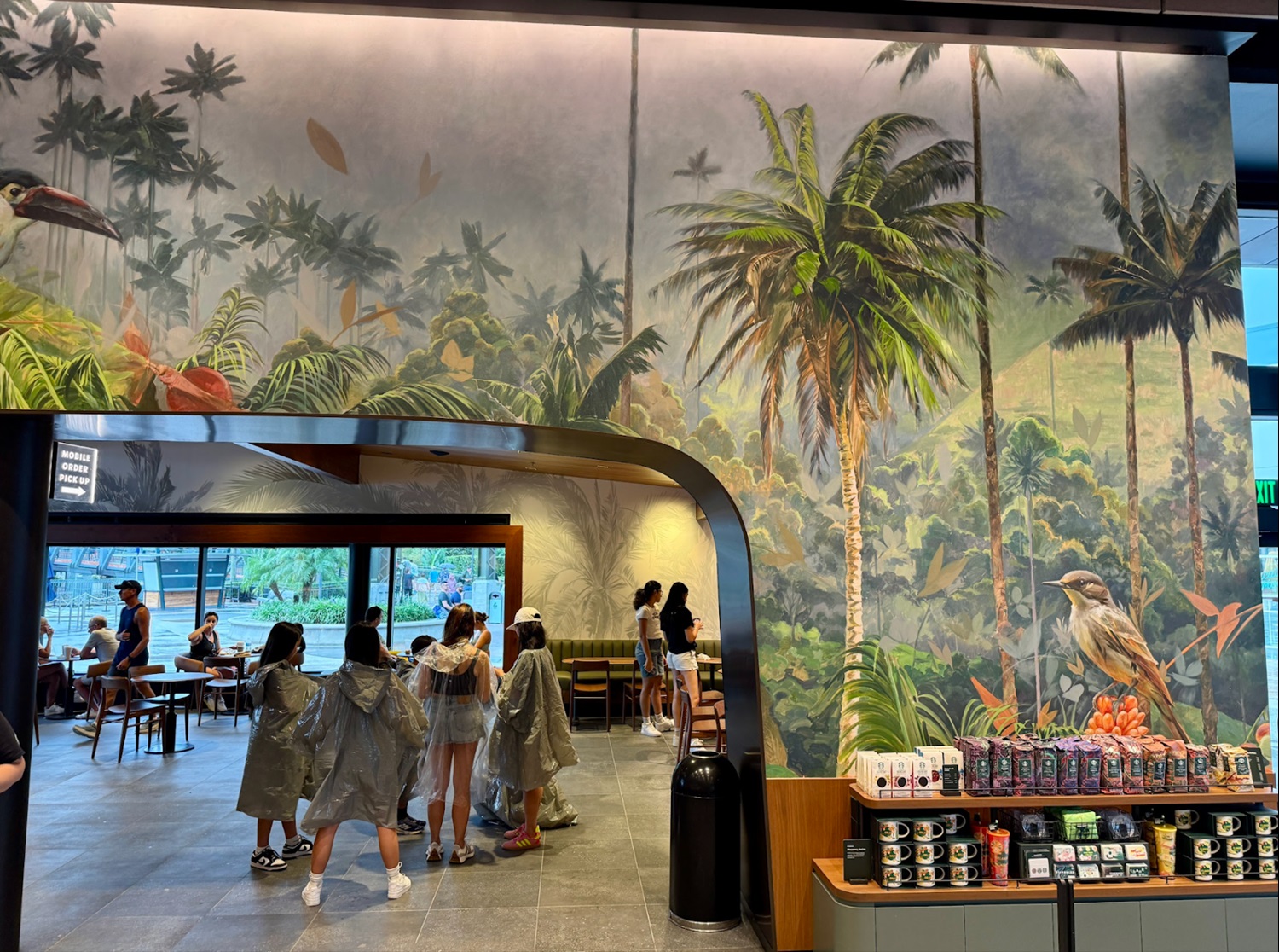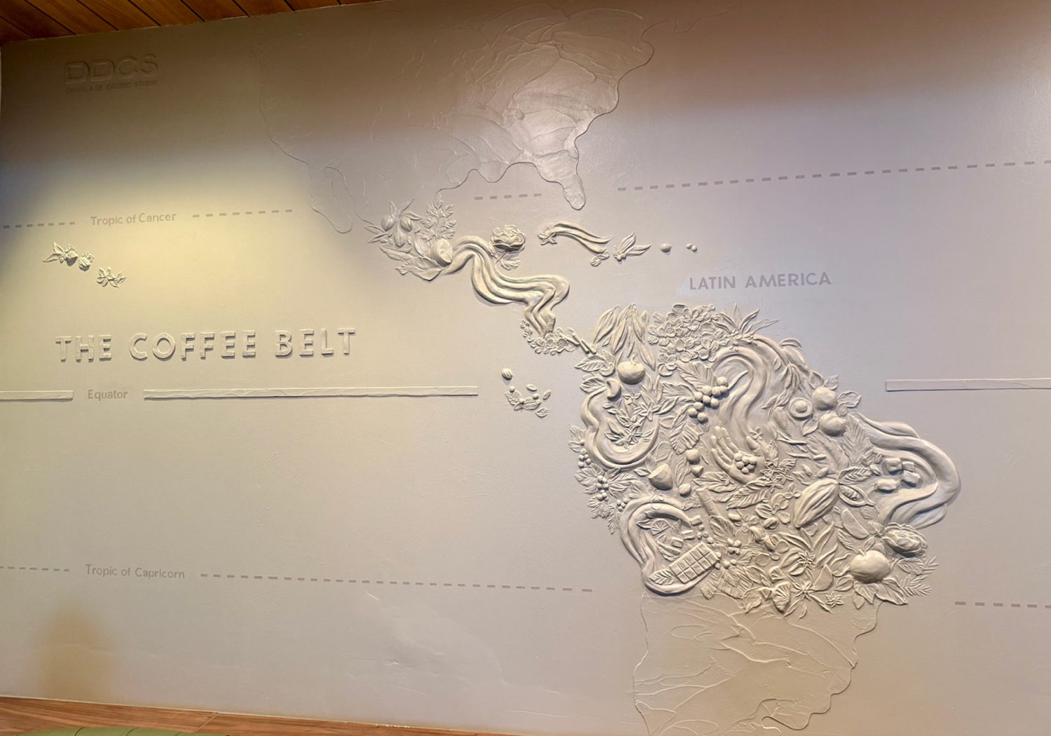 - The seating area in the cafe has also brightened up quite a bit, with a tropical mural on the wall as well as a 3D mural of The Coffee Belt on the back wall.