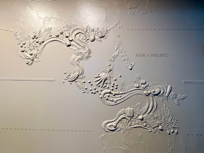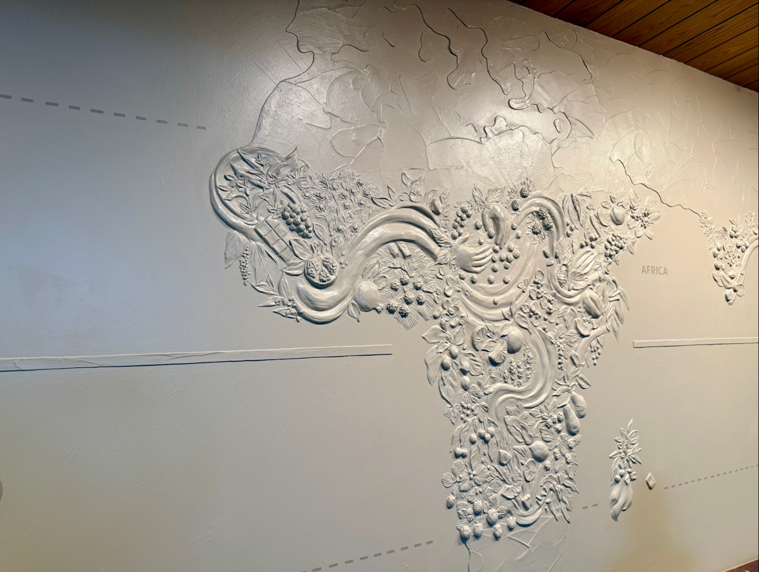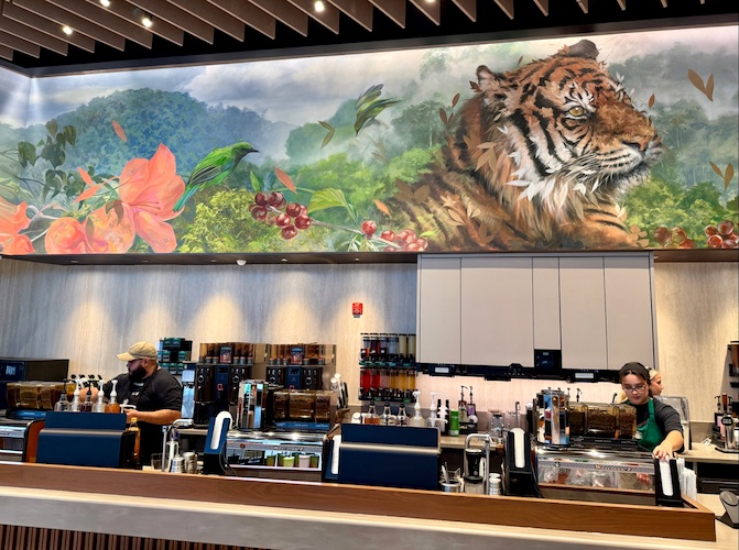 - The new murals that surround the inside of the store provide more depth and color, playing into the Coffee Belt theme of the cafe.