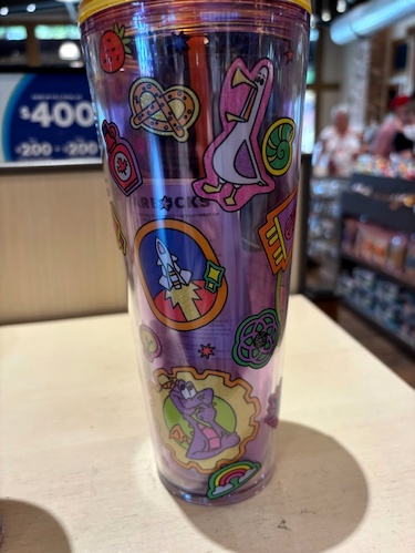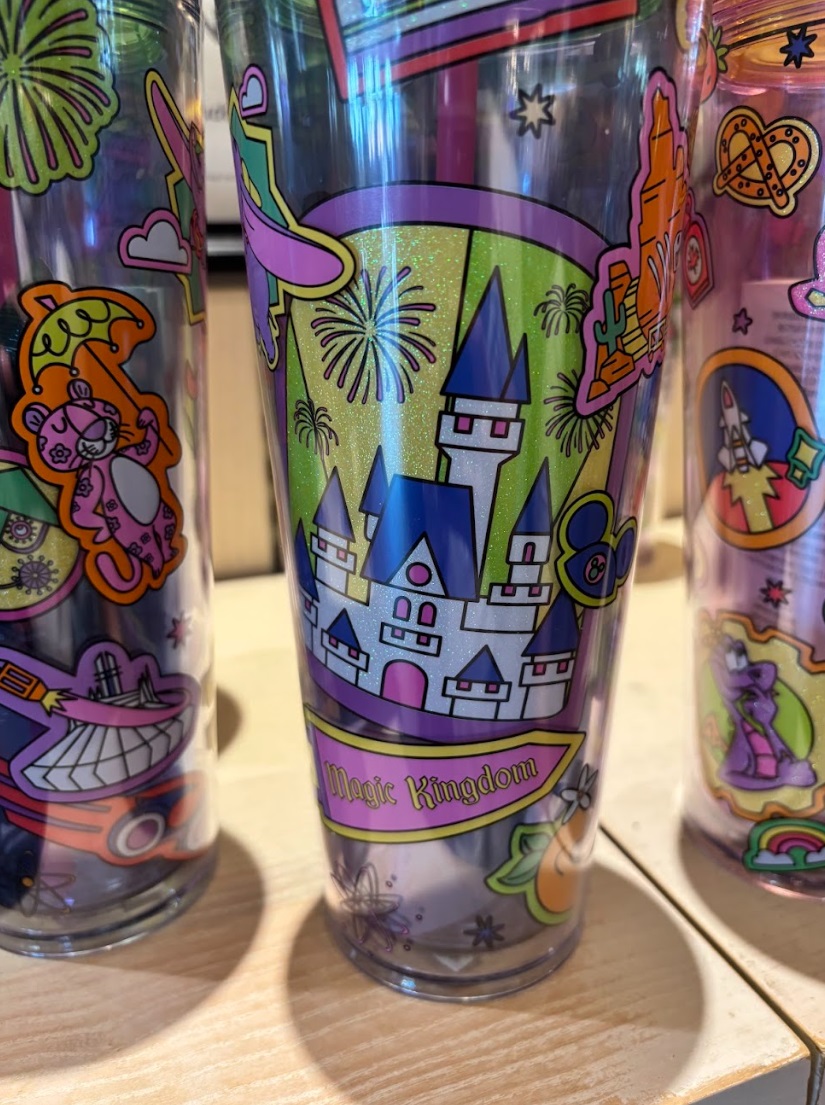 • The translucent colorful drinkware is decorated in patch-like iconography, which includes references to popular Walt Disney World attractions, icons and characters like Spaceship Earth, Twilight Zone Tower of Terror, Orange Bird, Mission: SPACE, Avatar: Flight of Passage and more.