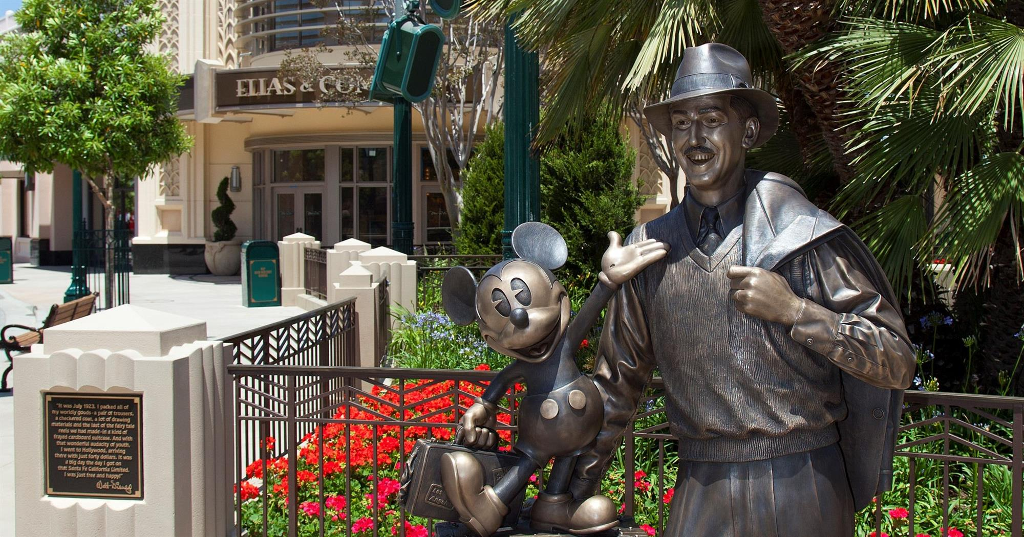 - The statue depicts an earlier version of Walt Disney alongside an earlier version of Mickey Mouse than the duo seen in the “Partners” statue at adjacent Disneyland Park at the end of Main Street U.S.A.