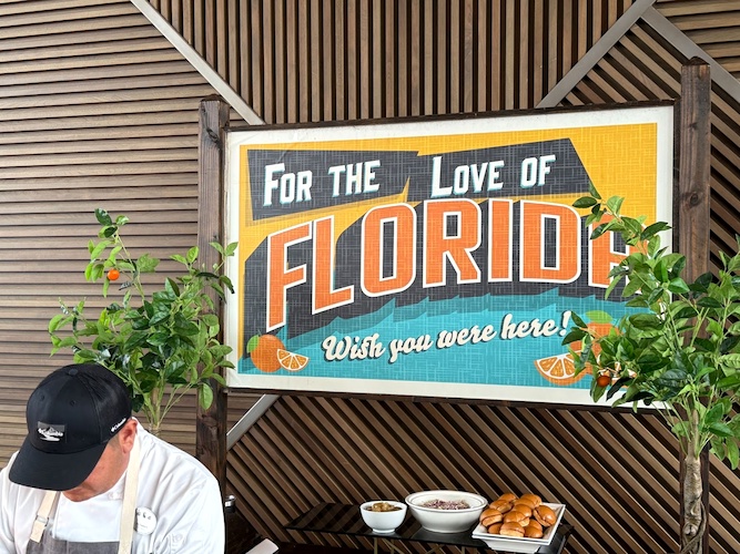 The event features unlimited food and beverage tastings for four hours each night, with dishes from the resort’s 23 restaurants and lounges, plus themed areas such as Chinatown, Carnival Corner and For the Love of Florida. Two of the resort’s celebrity chefs will be featured, including Todd English of Todd English’s bluezoo, who was at the event to talk about a signature tasting experience that he’ll be hosting during the Food & Wine Classic.