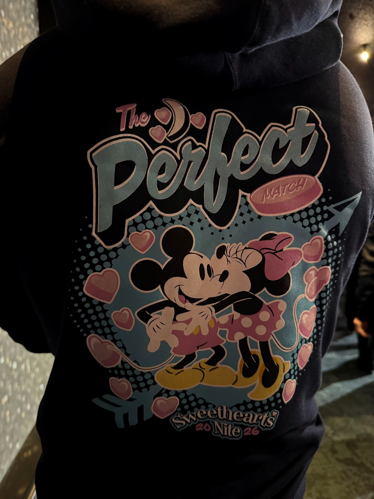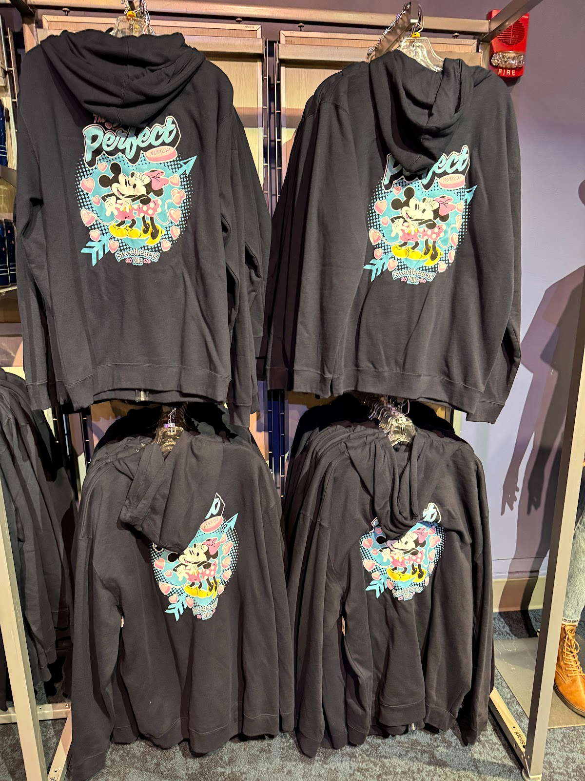 A zip-hoodie also features the event logo, as well as a design featuring Mickey and Minnie on the backside.