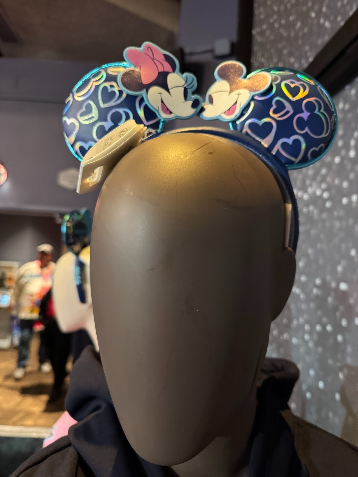 While the event is sold out for the year, those who get to attend will be able to purchase some fun memorabilia and apparel commemorating their visit, like a special pair of mouse ears featuring a stylized pattern, as well as Mickey and Minnine, meeting in the middle in a charming moment.