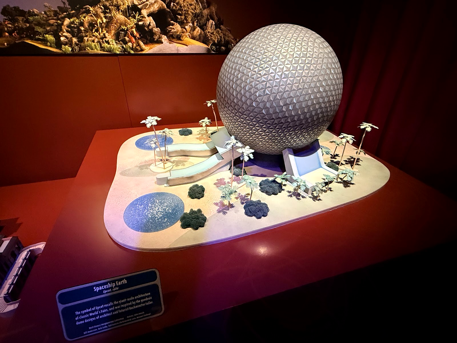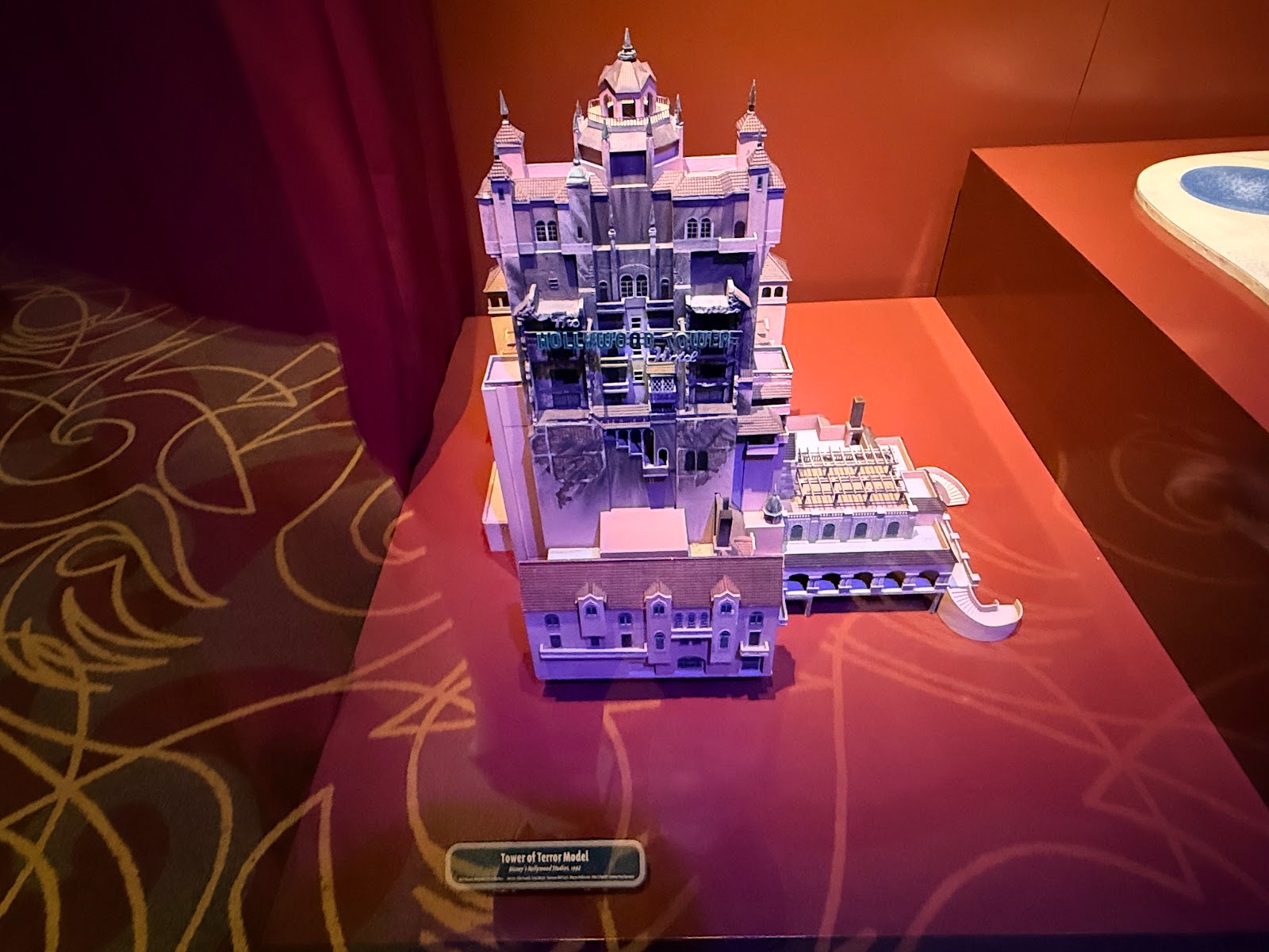The costumes, including outfits from the Reputation, The Tortured Poets Department, and Midnights era in the show, drew quite a crowd, creating a lengthy queue for the experience. Not featured, a Cardigan. The costumes didn’t take up a Blank Space in the exhibit though - they took over a display case featuring park models of both Spaceship Earth at EPCOT and The Twilight Zone Tower of Terror - which you can see towering over the very park you are in once you leave the exhibit.