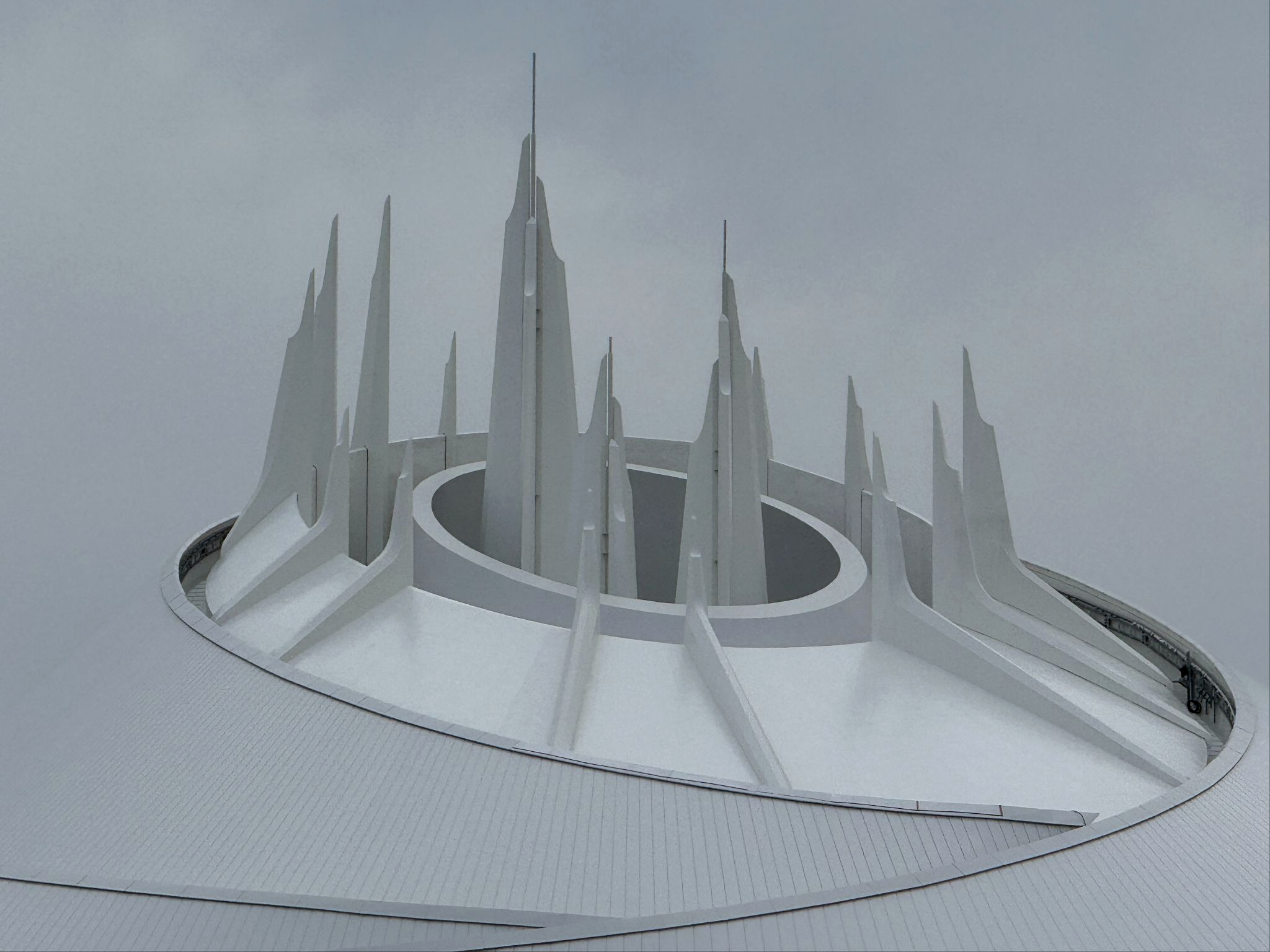 - Situated directly down the main entrance of Tomorrowland, the flowing design dominates the land with much of the base structure of the mountain now in place.