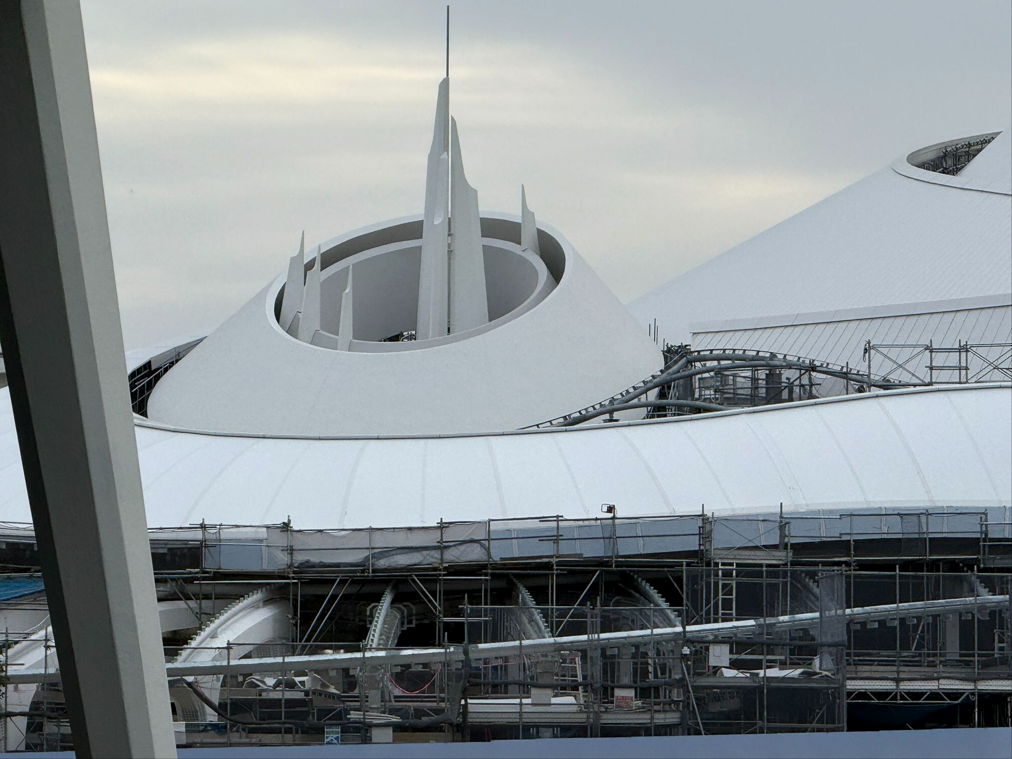 Next year, Tokyo Disneyland will debut a modern take on the classic Space Mountain attraction, with visible exterior work giving fans a look at the gorgeous new structure.