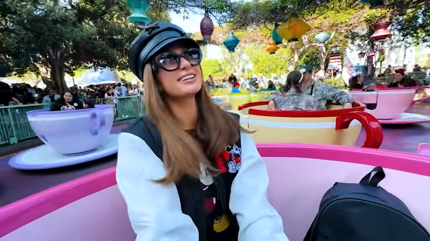 - Similar to other entries in the series, Hilton climbs aboard the Mad Tea Party at Disneyland and gets asked some basic park questions, like favorite snacks and things to do at the park, including moments where she was starstruck at a young age by the characters in the park.