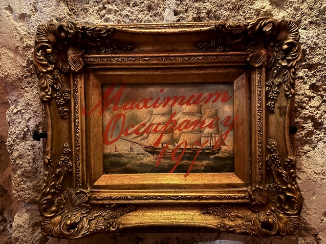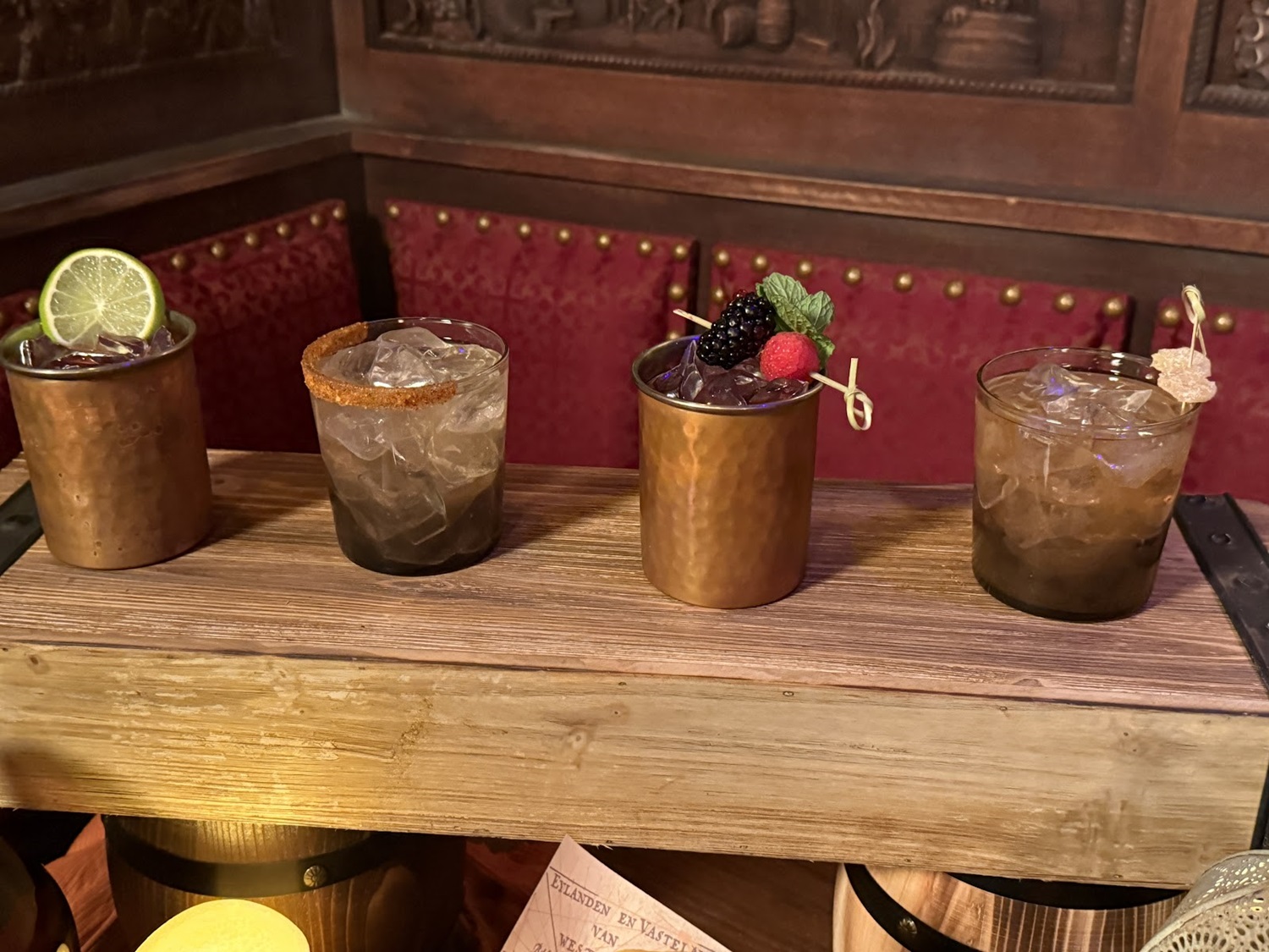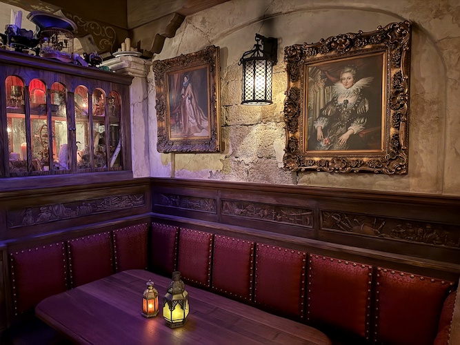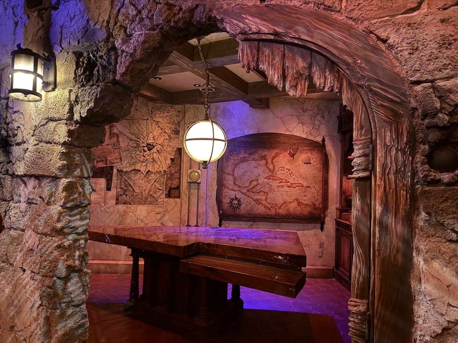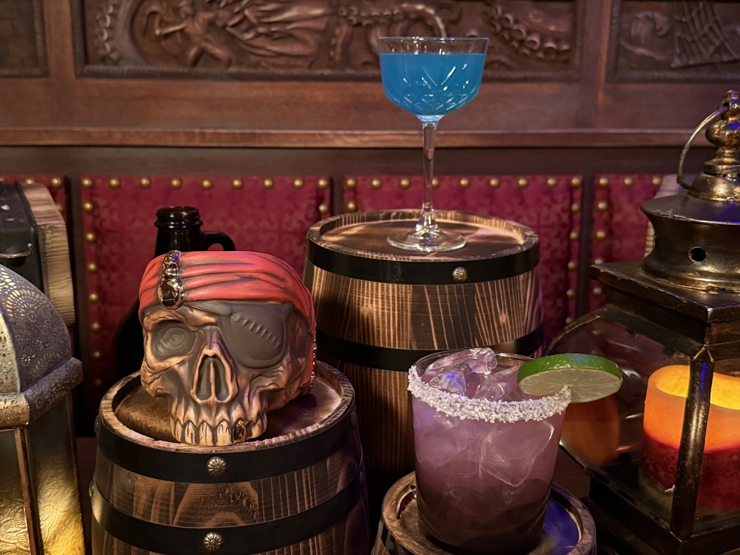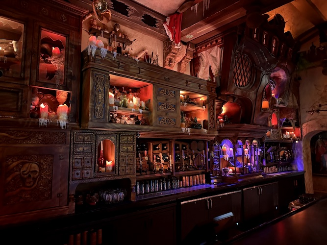 A portrait gallery includes Captain Merry, the founder of The Beak and Barrel, as well as the Enchantress who gifted the establishment with the Enchanted Rum Bottle in the center of the skull bar – ensuring that the bar will never go dry.