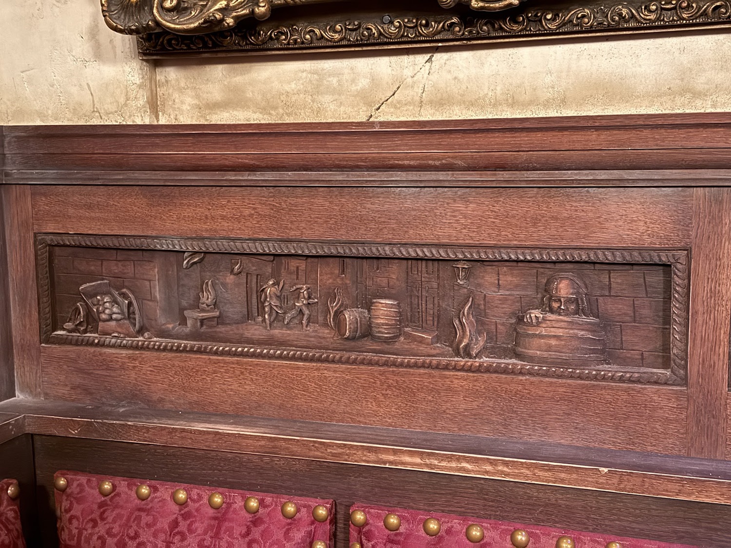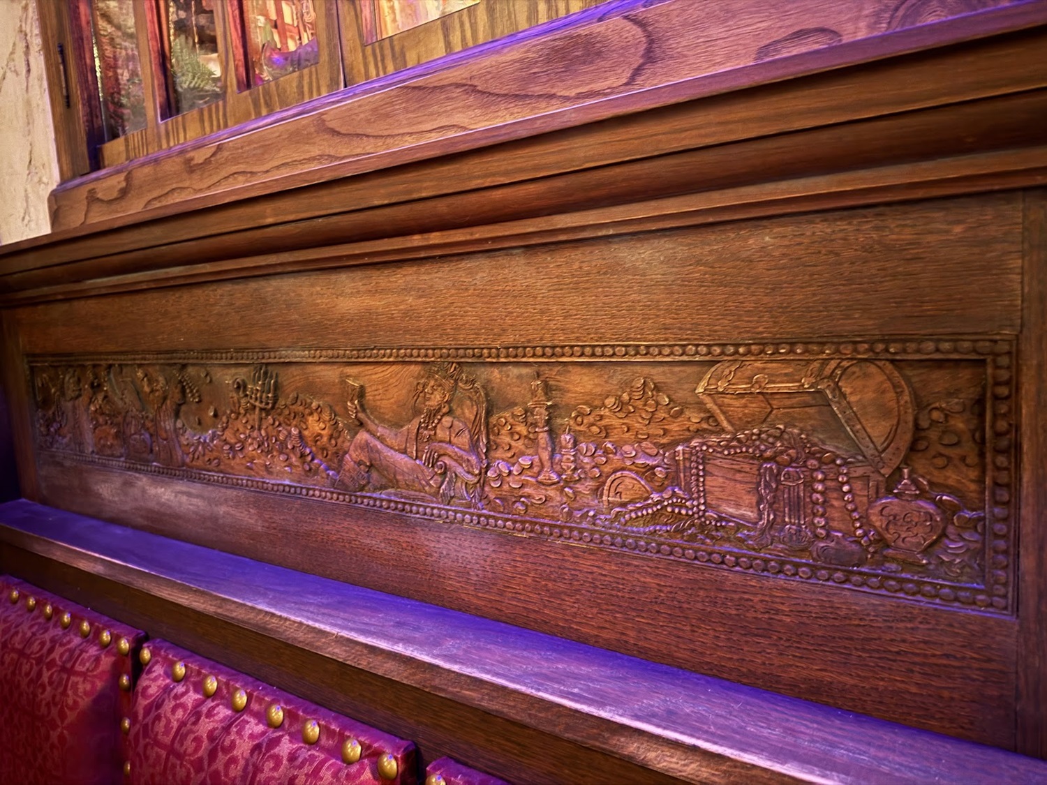 Stunning carved scenes depicting moments from the Pirates of the Caribbean films are found in some of the booths at the new establishment.