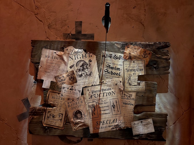 Fans of the attraction will love to see this sleeping pirate with a dangling foot hanging out above the map room, referencing the hairy-legged pirate in the attraction.